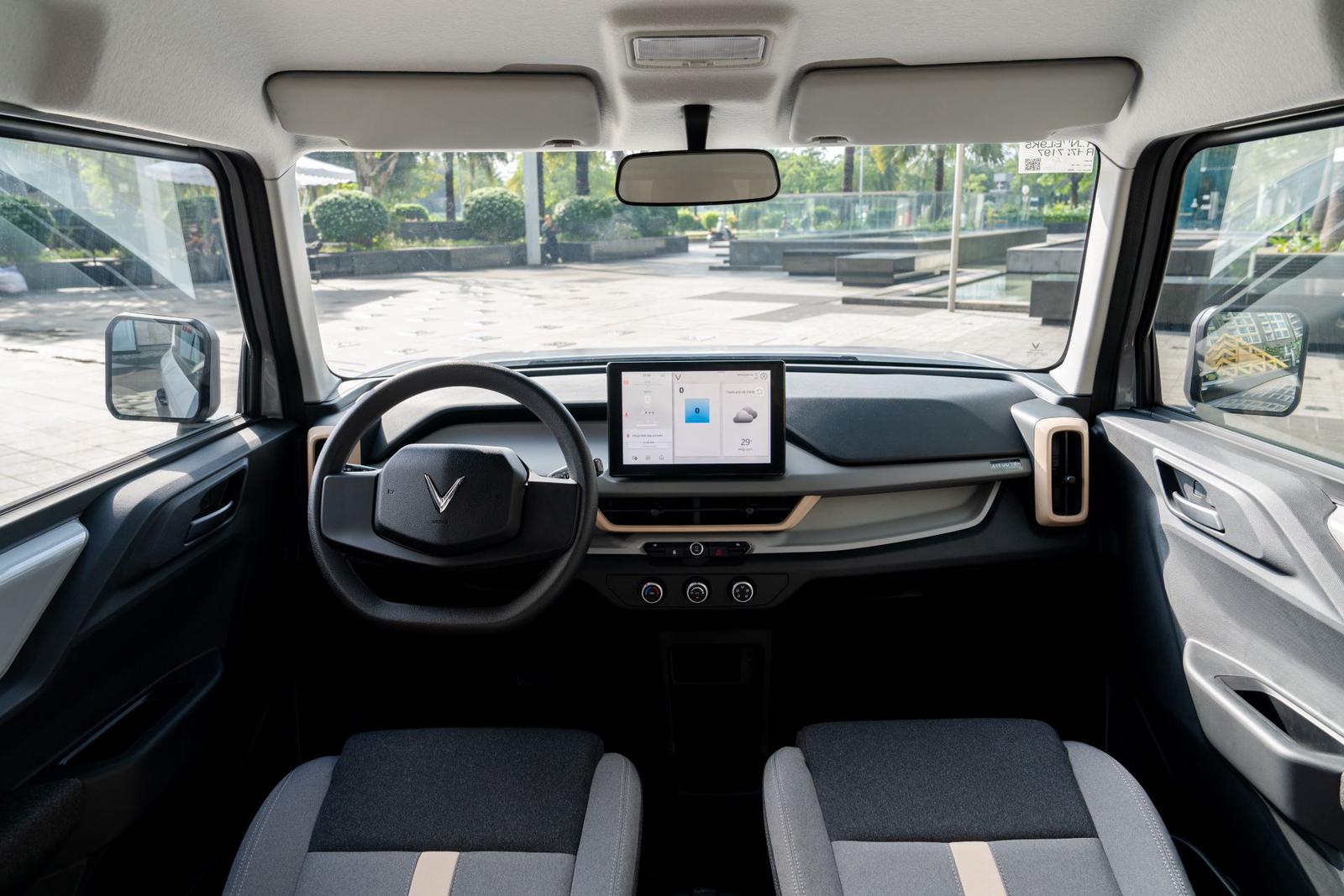 Dù là xe cỡ nhỏ, nhưng VinFast VF 3 vẫn được nhiều khách hàng khen về không gian nội thất rộng rãi đủ cho 4 người lớn. Khoang lái được thiết kế theo phong cách tối giản đặc trưng của VinFast với màn hình giải trí trung tâm 10 inch, cùng cần gạt chuyển số sau vô lăng tương tự những mẫu xe sang.