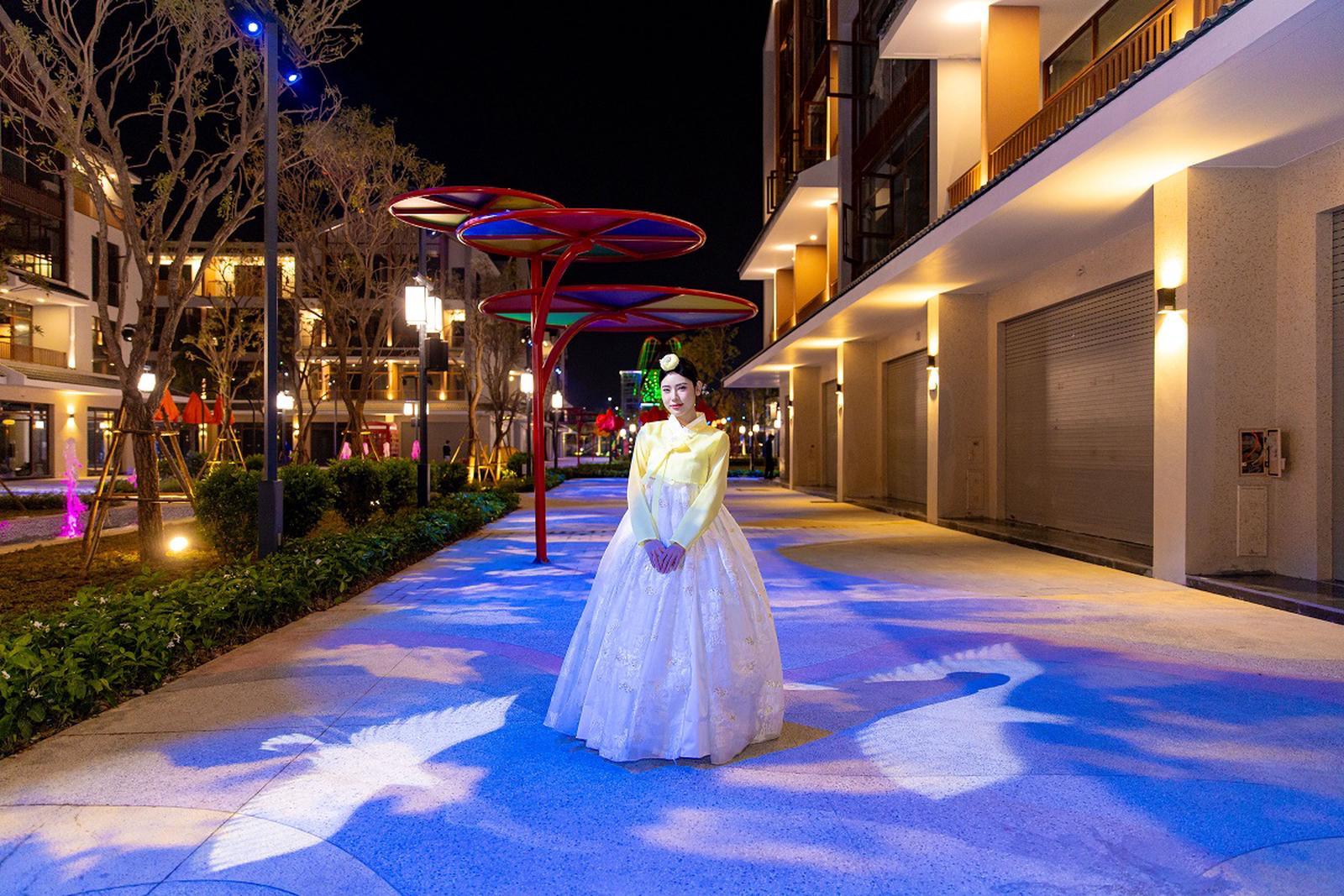 Trong khi đó, K-Street lại mang đậm hơi thở đương đại với cụm tượng nghệ thuật của Thỏ nâu, Thỏ trắng - những “đại sứ” quảng bá văn hóa Hàn Quốc ra khắp thế giới cùng với những ngôi nhà, biển hiệu quảng cáo rực rỡ ánh đèn khi mặt trời tắt nắng.