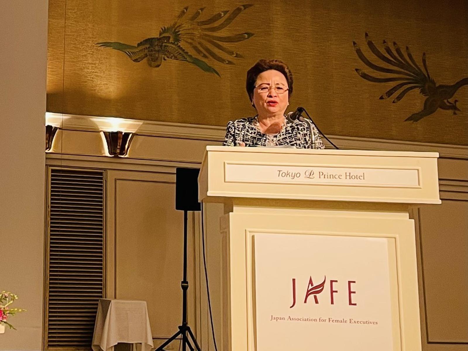 Madame Nguyễn Thị Nga phát biểu tại phiên họp thường niên của Hiệp hội nữ doanh nhân Nhật Bản (JAFE)