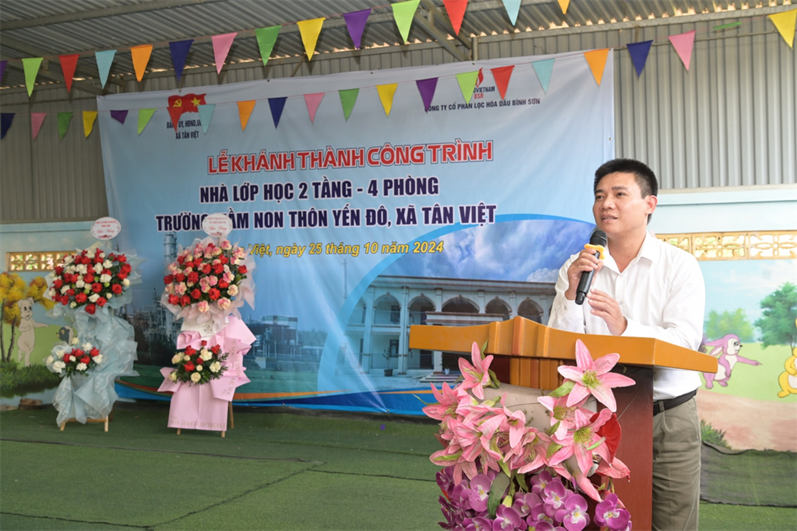 Tại lễ khánh thành, thay mặt hơn 1.500 cán bộ, người lao động BSR, Phó Tổng Giám đốc Phạm Minh Nghĩa đã gửi lời chúc tốt đẹp đến tập thể giáo viên Trường Mầm non thôn Yến Đô. Hy vọng công trình lớp học mới sau khi đưa vào sử dụng sẽ đáp ứng nhu cầu học tập và giảng dạy, tạo không gian, môi trường học tập đầy đủ tiện nghi để giáo viên, học sinh nâng cao chất lượng dạy và học; đáp ứng nhu cầu phát triển giáo dục của địa phương.