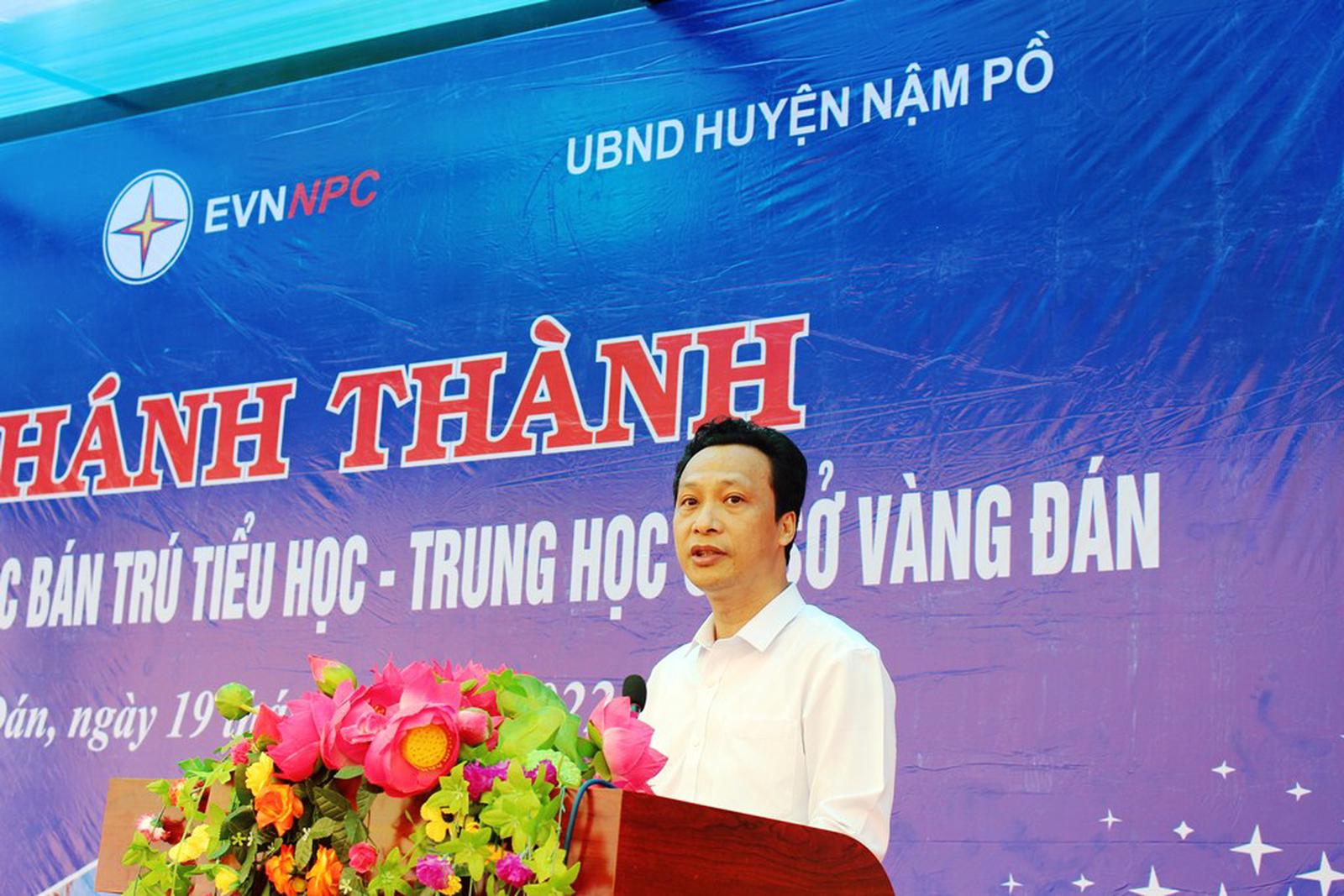 Ông Lê Minh Tuấn, Phó Tổng Giám đốc EVNNPC chia sẻ: “Cùng với EVN, chúng tôi tự hào là nhà tài trợ và đóng góp một phần vào sự phát triển kinh tế - xã hội của xã Vàng Đán, huyện Nậm Pồ. Công trình Trường Phổ thông Dân tộc bán trú Tiểu học – Trung học cơ sở xã Vàng Đán do ngành Điện đồng hành tài trợ đã mang trong mình nhiều ý nghĩa, tạo điều kiện cho công tác giảng dạy và học tập nơi đây ngày một tốt hơn. Với ngành Điện miền Bắc, đi đôi với việc hoàn thành toàn diện nhiệm vụ sản xuất kinh doanh, hàng năm chúng tôi đều dành ra những nguồn lực để xây dựng các trình công tác xã hội, từ thiện và hỗ trợ xây trường học, nhà tình nghĩa cho người nghèo tại nhiều tỉnh thành khu vực phía Bắc. Mong muốn duy nhất của chúng tôi là sự phát triển kinh tế, văn hóa ở các địa phương nghèo ngày một tốt đẹp hơn”.