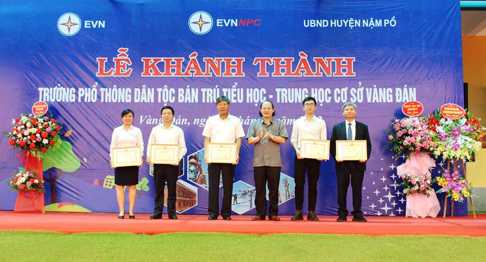 Cũng tại buổi Lễ khánh thành và trao tặng công trình Trường Phổ thông Dân tộc bán trú Tiểu học – Trung học cơ sở xã Vàng Đán, Công đoàn EVNNPC đã trao tặng 50 suất quà học bổng cho các cháu học sinh có hoàn cảnh khó khăn; Đoàn Thanh niên EVNNPC tặng 250 phần quà là áo ấm và sách viết; Công ty Điện lực Điện Biên tặng 250 suất quà là những chiếc balo đựng sách vở học tập cho các em học sinh.