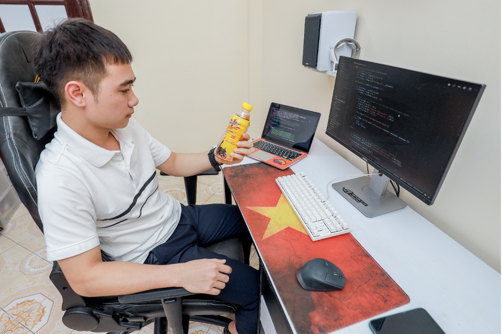 “Tình cờ mình được anh đồng nghiệp cho một chai nước tăng lực Number 1, hương vị thơm ngon kết hợp cùng đá lạnh mang lại cho mình cảm giác sảng khoái, thúc đẩy tinh thần làm việc. Nhờ thế mà mình hoàn tất nhanh chóng các công việc trong ngày, không phải tăng ca và có thời gian nghỉ ngơi ” anh Lê Đạt nói.