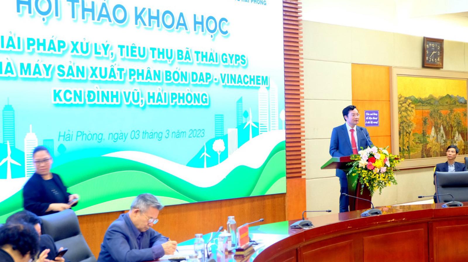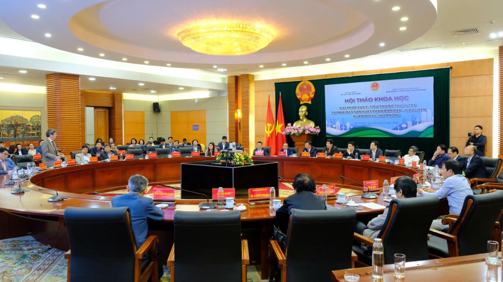 Mới đây, Vụ Vật liệu xây dựng - Bộ Xây dựng và Ban Quản lý Khu kinh tế Hải Phòng vừa đồng chủ trì tổ chức Hội thảo khoa học “Giải pháp xử lý, tiêu thụ bã gyps (thạch cao PG-PV) tại Nhà máy sản xuất phân bón DAP – Vinachem, Khu công nghiệp Đình Vũ, Hải Phòng" tại Hải Phòng.