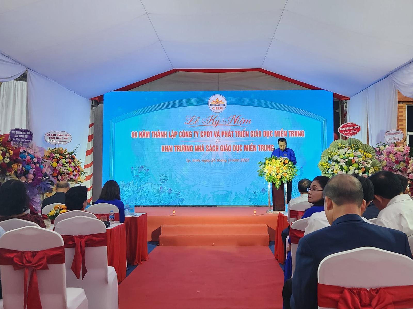 Nhân dịp kỷ niệm, Cty đã tổ chức khai trương ra mắt Nhà sách Giáo dục Miền Trung tại số 73 Nguyễn Cảnh Chân, phường Quang Trung, TP Vinh. Siêu thị có đội ngũ nhân viên bán hàng có nghiệp vụ chuyên môn cao về sư phạm, có kiến thức để tư vấn chuyên nghiệp, giúp khách hàng dễ dàng lựa chọn mua sắm. Đây là địa chỉ mua sắm thuận tiện và tin cậy của người dân trên địa bàn và các vùng phụ cận, đồng thời là công trình có ý nghĩa lớn góp phần phát triển tri thức và văn hóa đọc.