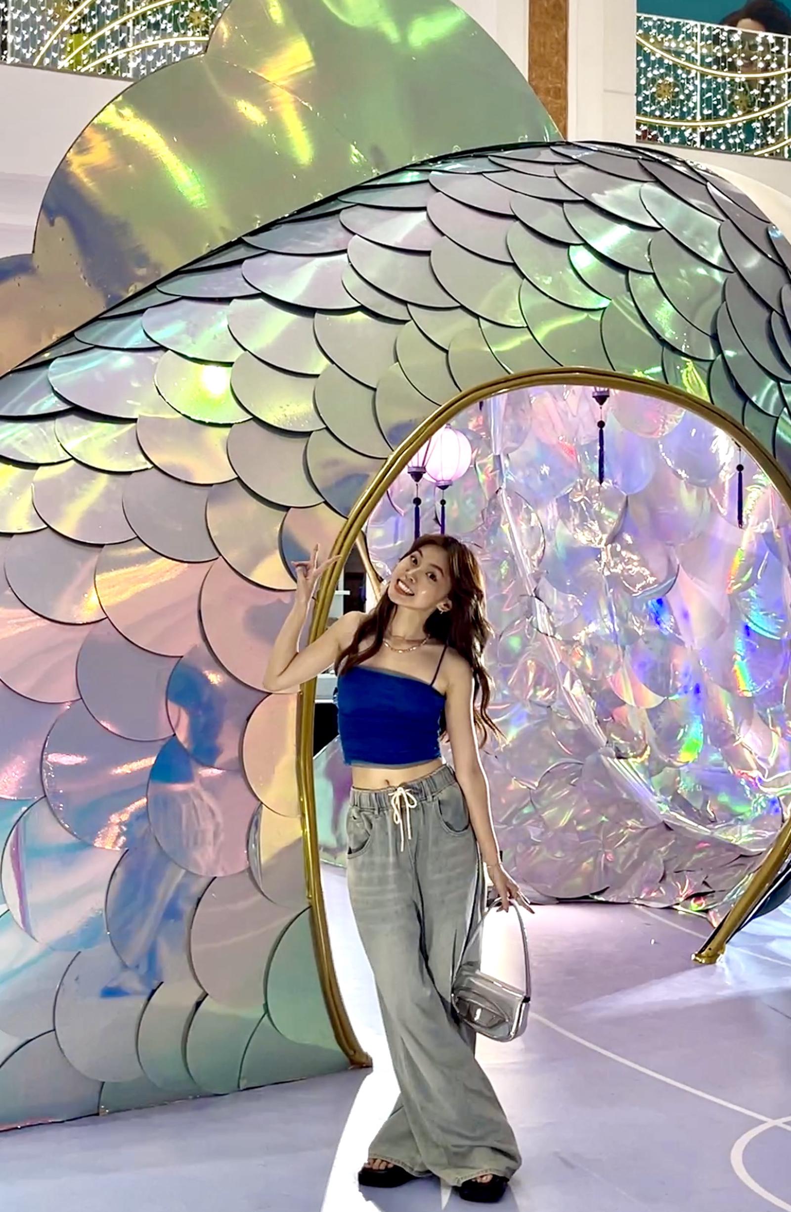 Tại Vincom Mega Mall Royal City (Hà Nội), Phi thuyền cá chép khổng lồ 7 màu thu hút nhiều hot Tiktoker trong mùa Trung thu năm nay