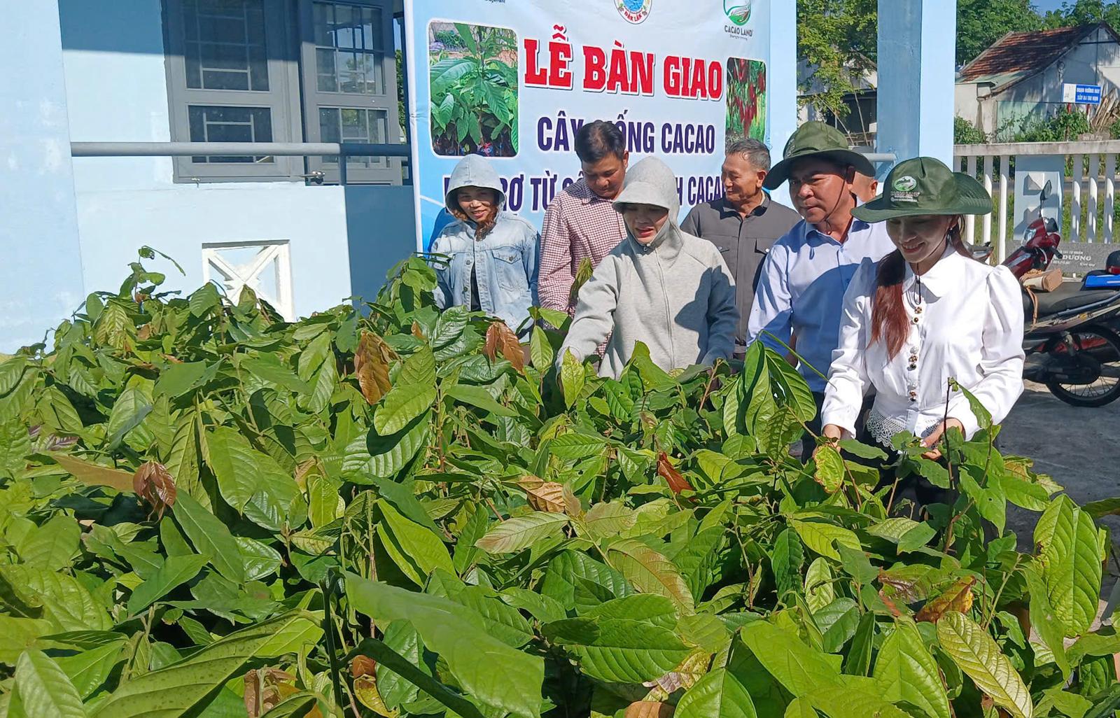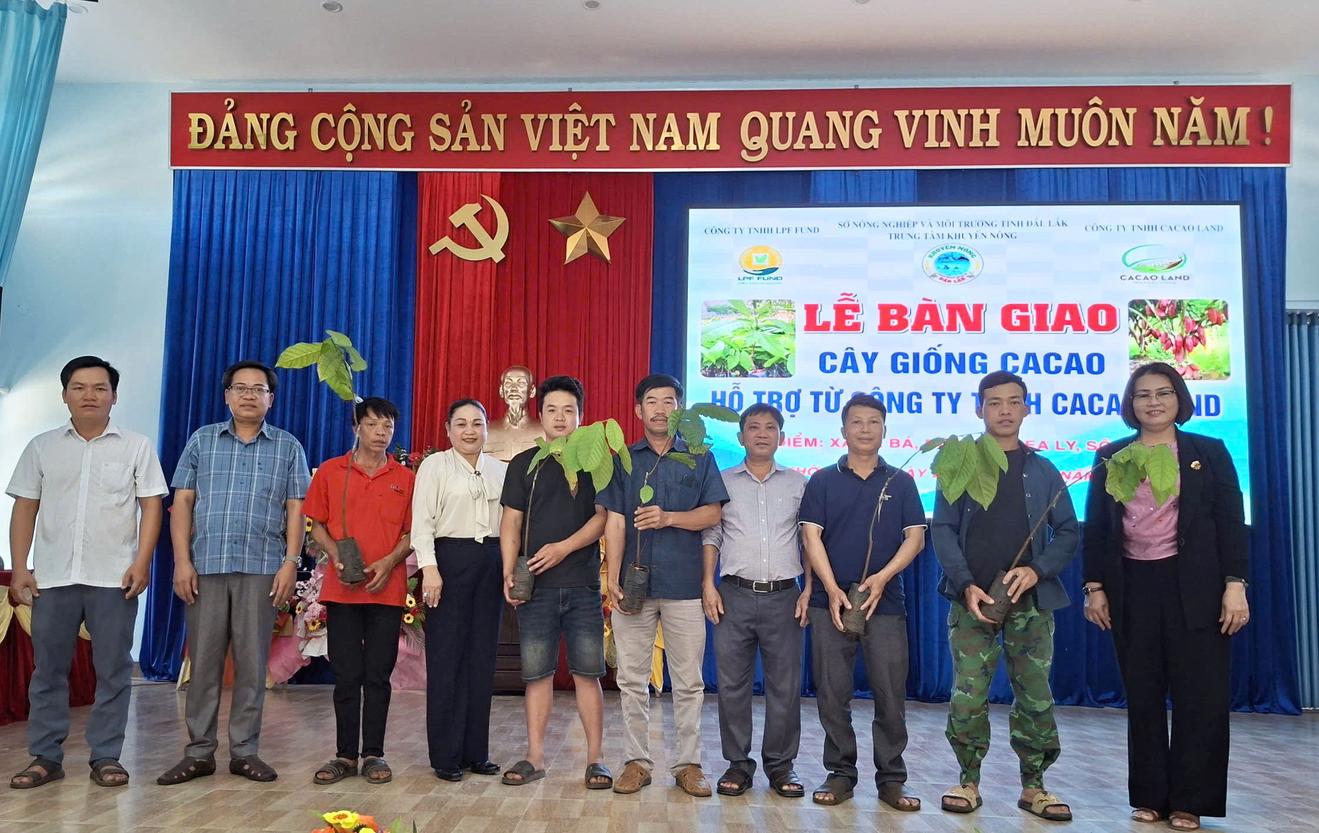 Đại diện Công ty TNHH Cacao Land đã bàn giao cây giống ca cao tại các xã Ea Bá, Đức Bình, Ea Ly và Sông Hinh, tỉnh Đắk Lắk