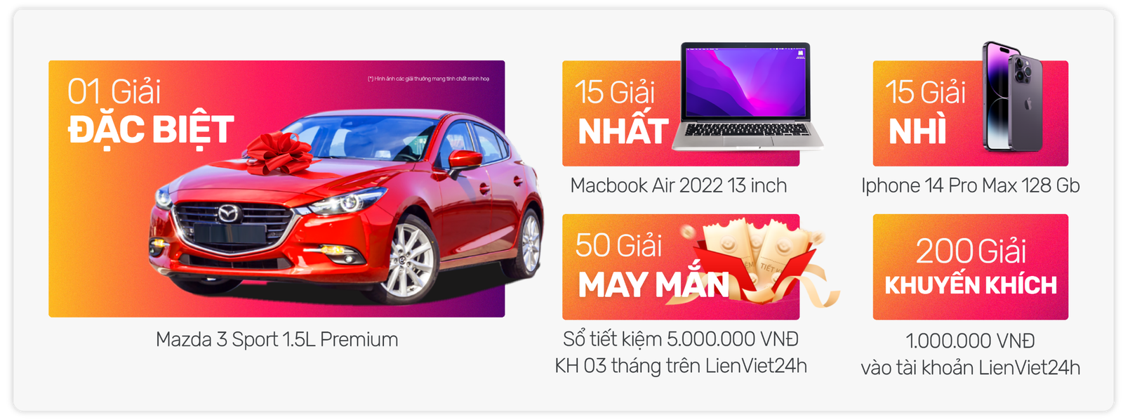 Với khách hàng giao dịch thanh toán trên Lienviet24h, khi phát sinh giao thanh toán thành công có giá trị tối thiểu từ 50.000 VNĐ sẽ nhận 01 mã dự thưởng, mỗi loại dịch vụ nhận tối đa 05 mã dự thưởng/ngày. Các dịch vụ áp dụng bao gồm: dịch vụ điện thoại, mua sắm online, bảo hiểm, thanh toán hóa đơn (không bao gồm giao dịch thanh toán thẻ tín dụng).
