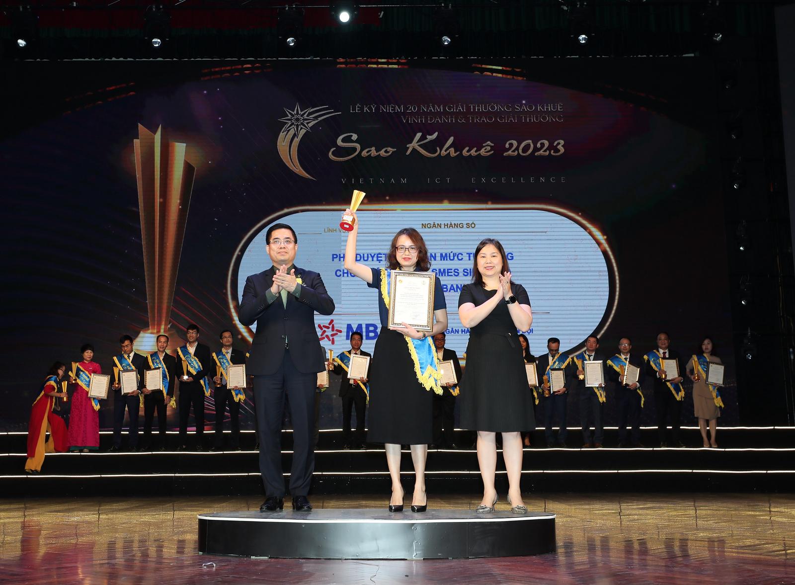 Ngày 28/4, tại Hà Nội, Hiệp hội Phần mềm và dịch vụ CNTT Việt Nam (VINASA) tổ chức lễ kỷ niệm 20 năm Giải thưởng Sao Khuê, vinh danh và trao Giải thưởng Sao Khuê 2023. Cả hai sản phẩm số của MB là Chợ ứng dụng Mini App (MB Market Place) và Tính năng phê duyệt cấp hạn mức tự động trên BIZ MBBank phục vụ cho khách hàng doanh nghiệp siêu nhỏ đều được xướng tên ở hai hạng mục tương ứng là “Các nền tảng chuyển đổi số” và “Ngân hàng số”.