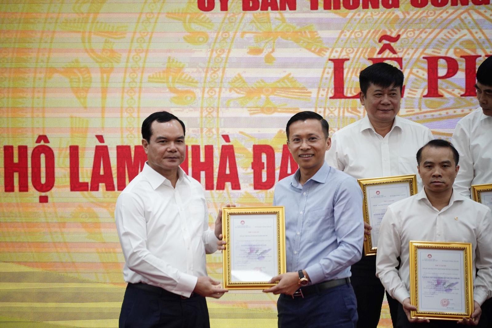 Ông Phạm Như Ánh – Phó Tổng giám đốc phụ trách Ban điều hành MB (bên trái) đại diện trao tặng chương trình 100 căn nhà Đại đoàn kết với tổng trị giá 5 tỷ đồng