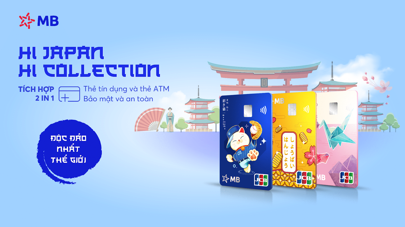 Từ giữa năm 2022 đến nay, MB liên tục “khuấy động” thị trường khi cho ra mắt dòng thẻ MB Hi Collection. Đây là dòng thẻ đa năng MB 2 in 1, tích hợp cả thẻ tín dụng và thẻ ATM, giúp khách hàng cá nhân hóa nhu cầu sử dụng, trong khi vẫn đảm bảo các yếu tố về an toàn và bảo mật. Điểm đặc biệt của dòng thẻ MB Hi Collection là cho phép khách hàng được sở hữu thẻ cứng ngay lập tức mà không cần phải chờ đợi theo cách mở thẻ truyền thống thông thường. Thẻ sẽ được kích hoạt chỉ trong chưa đầy 60 giây ngay sau khi chủ thẻ định danh thẻ trên app MBBank.