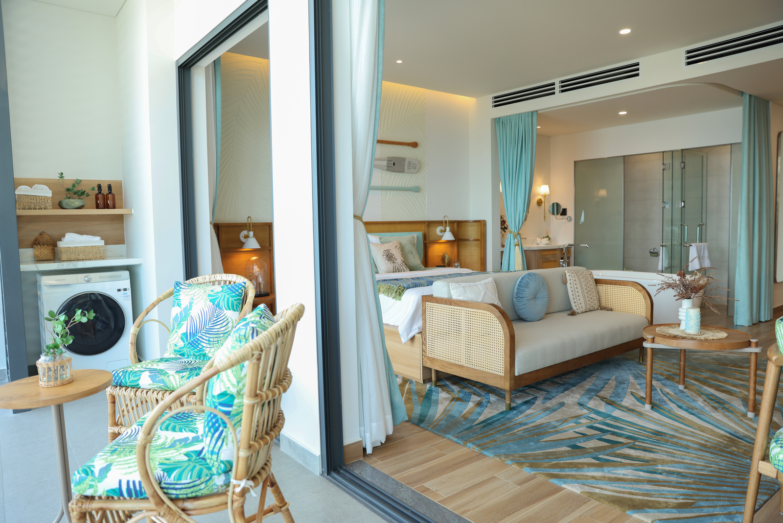 Á hậu Miss World Vietnam 2022 Phương Nhi đặc biệt yêu thích khu vực balcony của MerryHome, nơi có thể ngồi nhâm nhi tách trà và lắng nghe tiếng sóng biển rì rào ngay tại nhà. Ảnh:HT