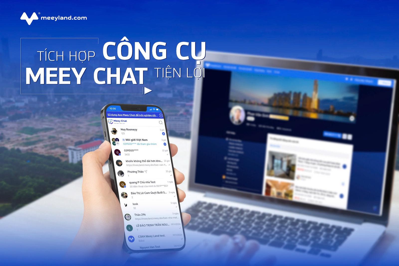 Đặc biệt, việc tích hợp công cụ Meey Chat giúp nhà môi giới bất động sản trò chuyện, trao đổi trực tiếp với khách hàng ngay trên nền tảng meeyland.com một cách nhanh chóng, thuận tiện. Các thắc mắc được giải đáp dễ dàng, trực quan với tính năng cho phép gửi file, hình ảnh ngay trong cửa số chat; lưu trữ đoạn chat… Với các tính năng vượt trội của Meey Chat ngay trên nền tảng, sẽ không còn những cuộc gọi nhỡ hay gián đoạn, qua đó tối ưu quá trình tư vấn, chốt giao dịch nhanh chóng.