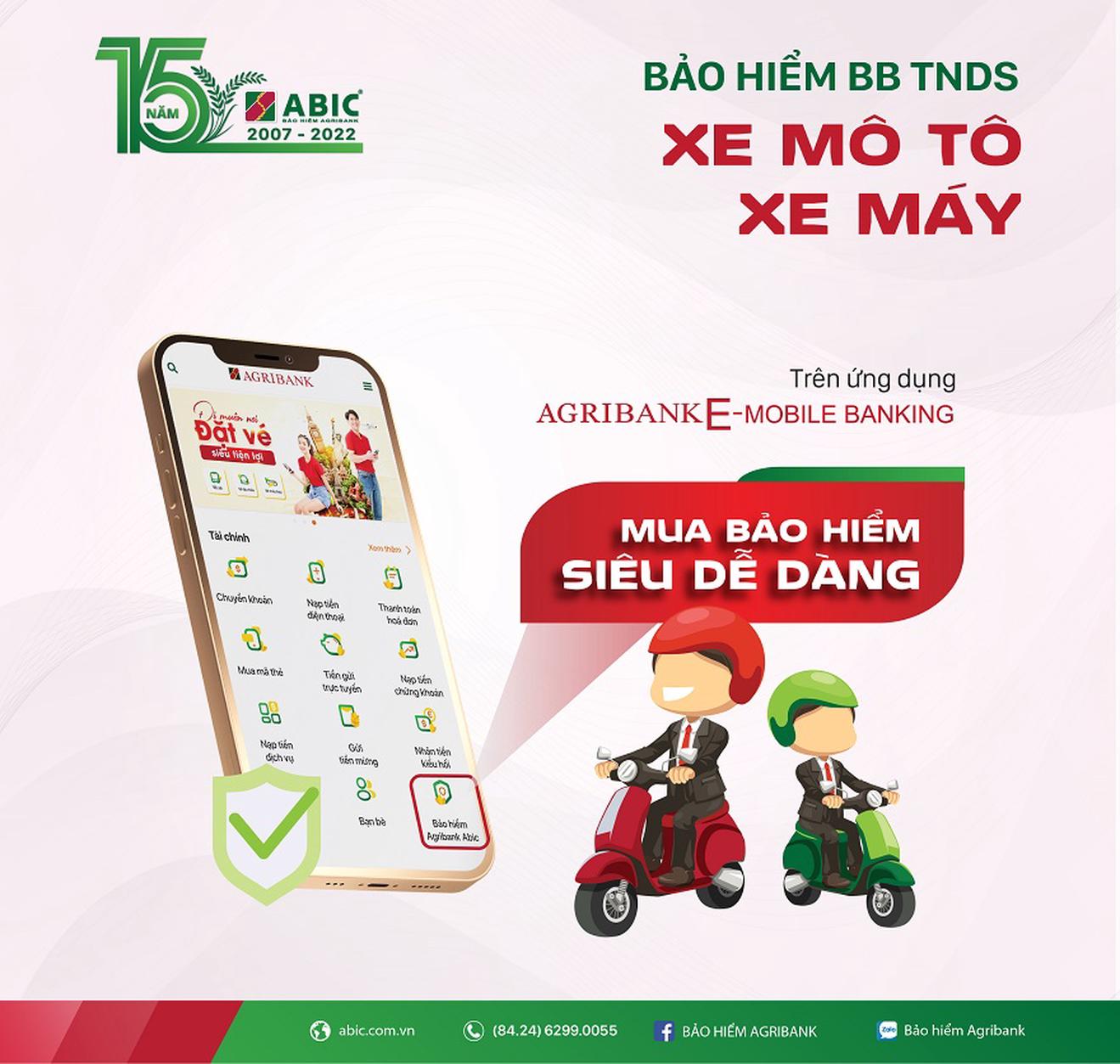 (Thanh tra) Nhằm đa dạng hóa các kênh phân phối sản phẩm bảo hiểm và gia tăng tiện ích, trải nghiệm cho khách hàng, từ ngày 15/5/2022, Bảo hiểm Agribank đã triển khai dịch vụ cấp bảo hiểm bắt buộc trách nhiệm dân sự (TNDS) cho chủ xe mô tô, xe máy ngay trên ứng dụng Agribank E-Mobile Banking.