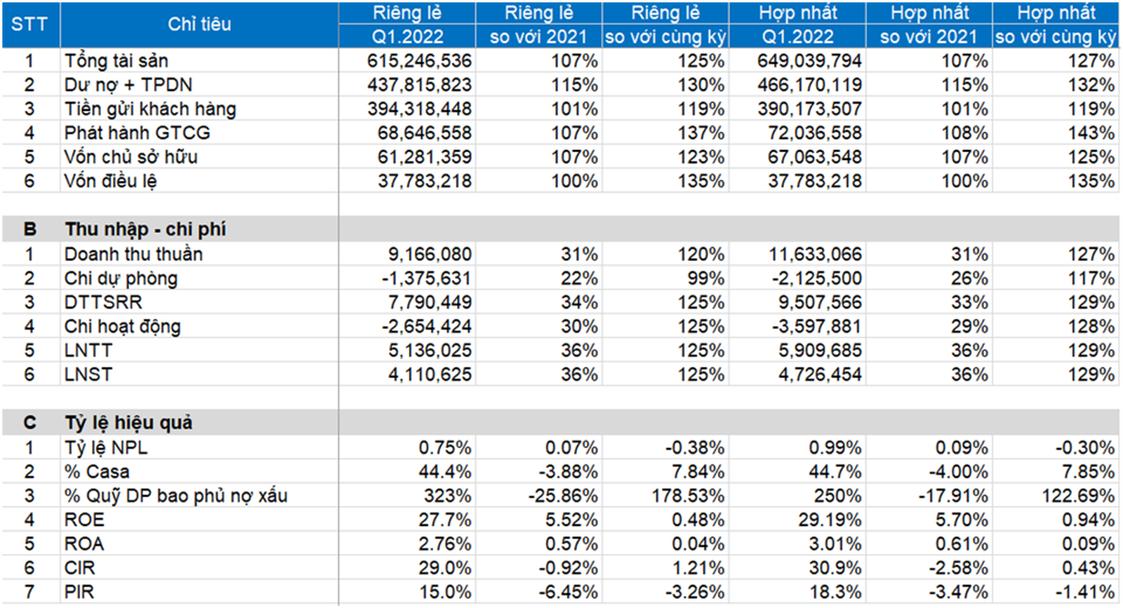 Được biết, MB đã duy trì đà tăng trưởng tốt trong 3 tháng đầu năm 2022. Kết quả kinh doanh Quý I/2022 của MB cụ thể như sau: