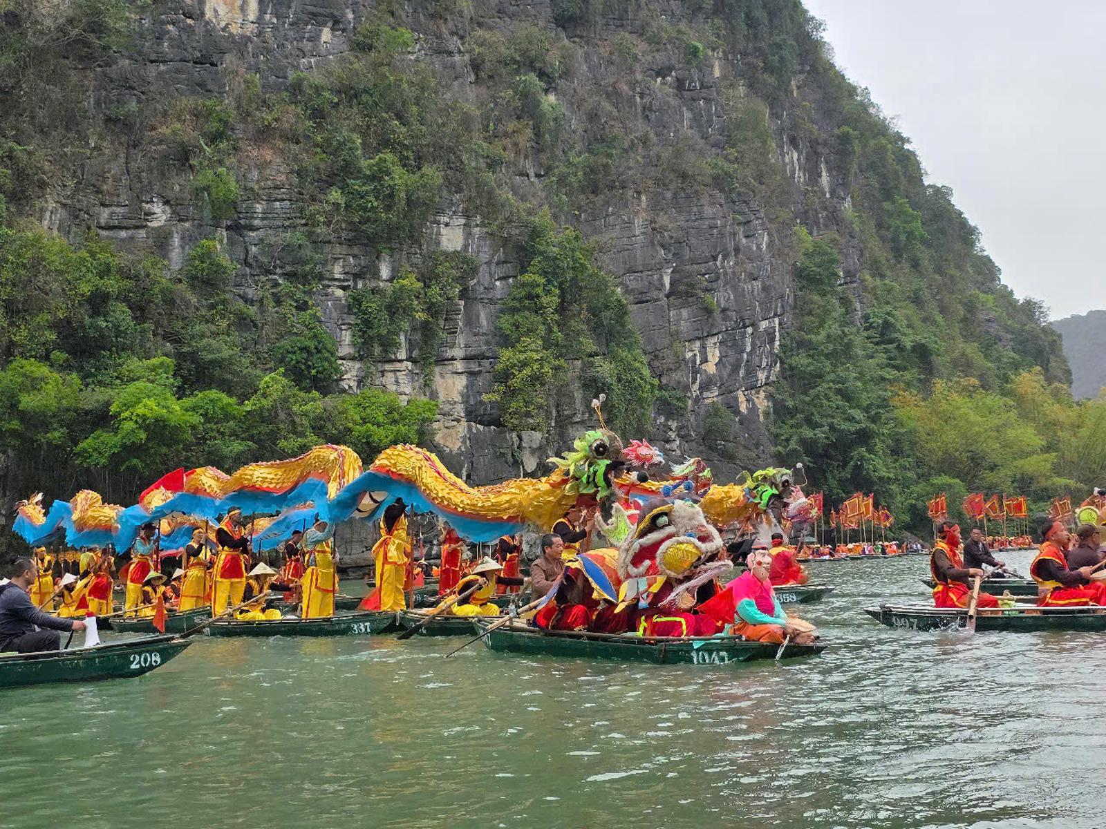 Cảnh lễ hội Tràng An trên sông Sào Khê, ảnh: TV