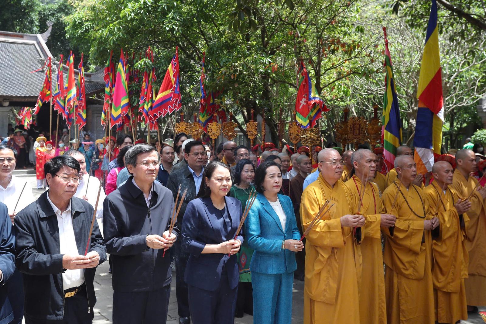 Các đại biểu dâng hương cầu cho quốc thái dân an tại lễ hội Tràng An. Ảnh: TV