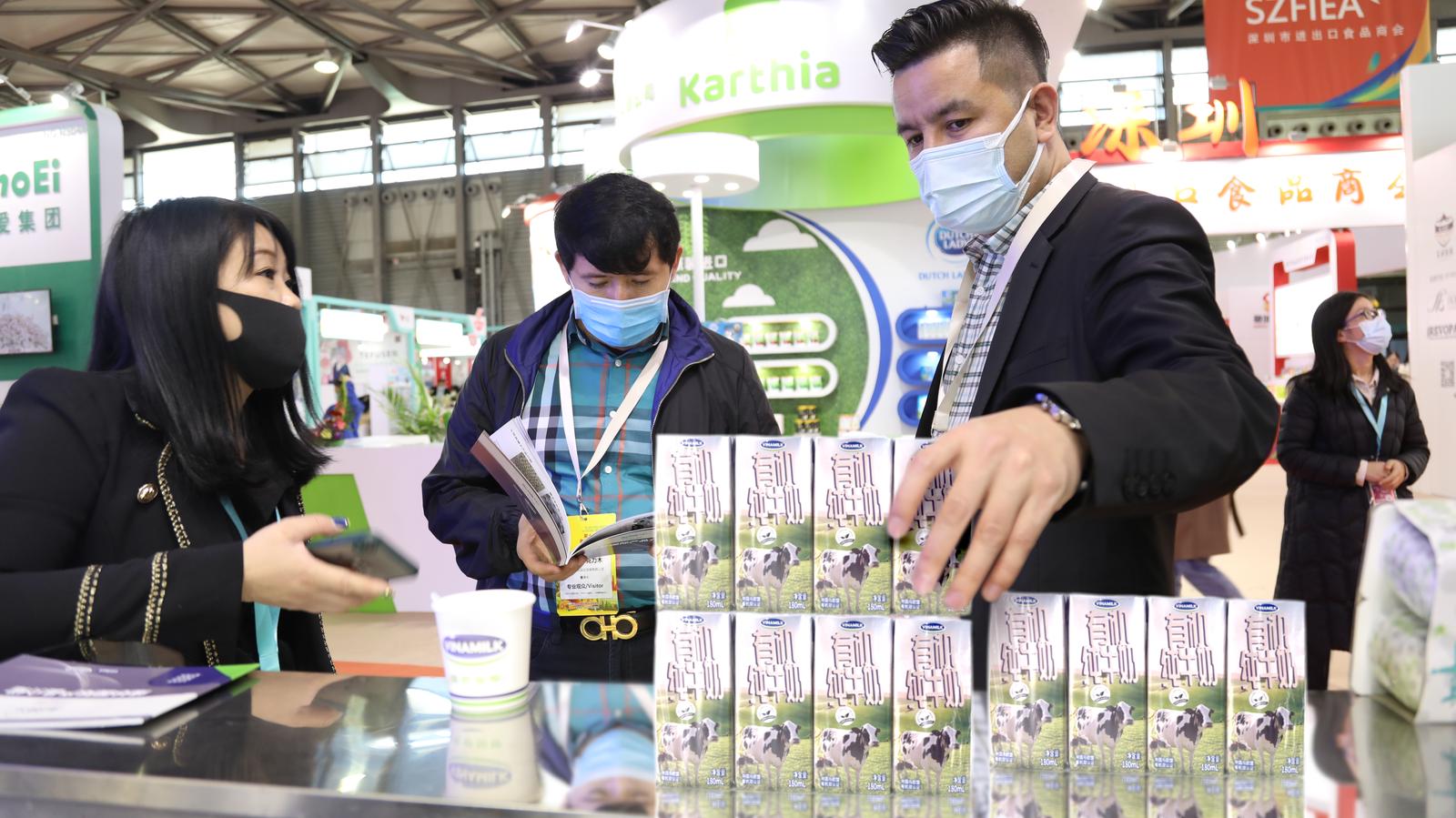 Các sản phẩm sữa của Vinamilk được người tiêu dùng chú ý khi tham gia hội chợ thực phẩm quốc tế tại Thượng Hải cuối năm 2021