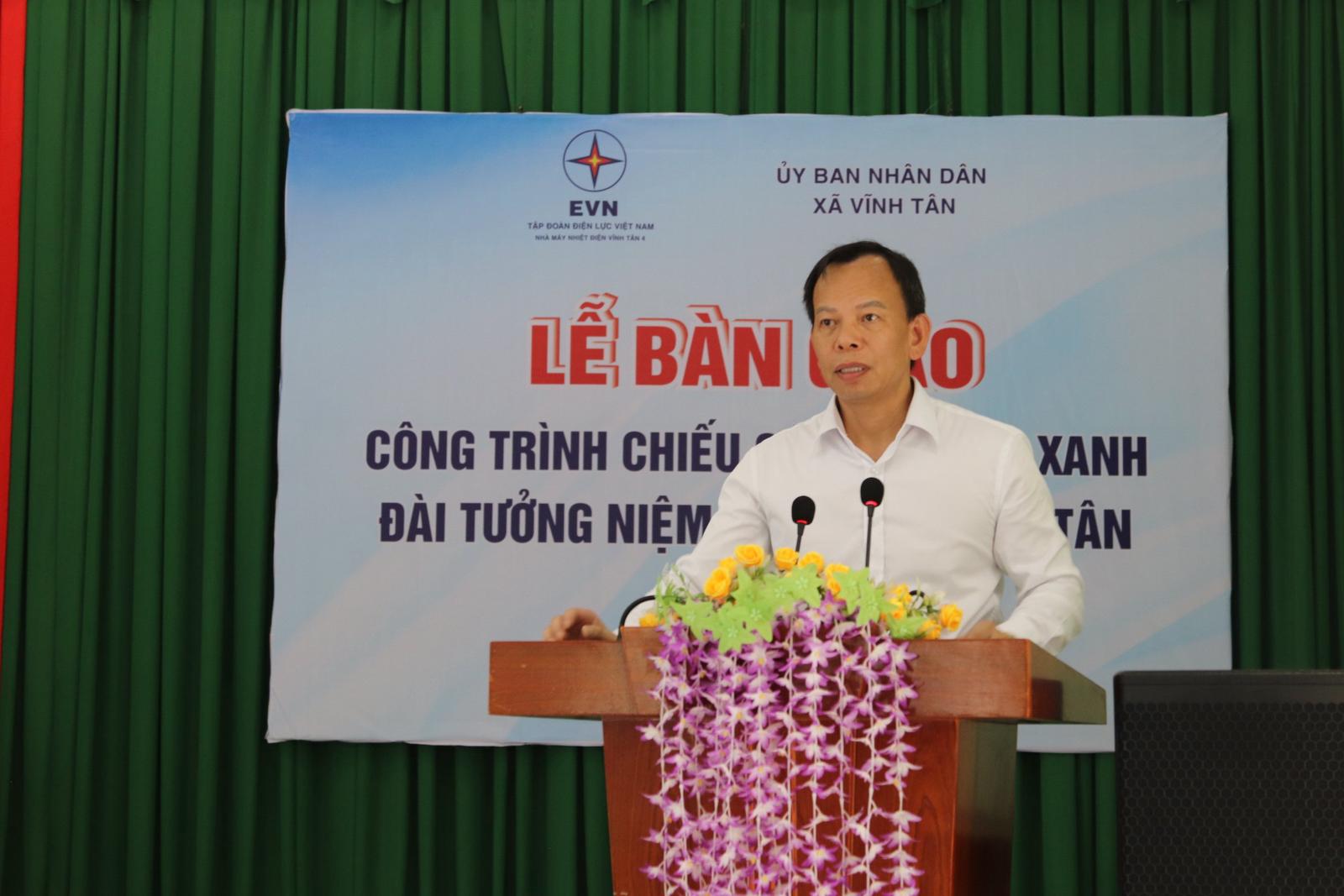 Phát biểu tại buổi lễ trao tặng, ông Phan Thanh Nhựt – Phó Chủ tịch UBND Xã Vĩnh Tân cảm ơn Nhà máy Nhiệt điện Vĩnh Tân 4 đã luôn đồng hành cùng chính quyền và người dân xã Vĩnh Tân trong suốt thời gian qua và mong rằng thời gian tới tiếp tục nhận được sự quan tâm hỗ trợ của Nhà máy.