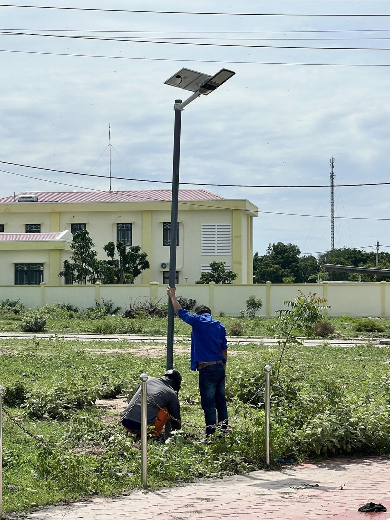 Từ ngày 15 - 22/7 vừa qua, các hoạt động kể đến như: Thực hiện lắp đặt 06 bộ cột đèn năng lượng mặt trời và trồng cây xanh, vệ sinh, chỉnh trang cảnh quan tại Đài Tưởng niệm Anh hùng liệt sĩ Xã Vĩnh Tân; lắp đặt 09 bộ cột đèn năng lượng mặt trời tại đoạn đường thuộc thôn Vĩnh Phúc, Xã Vĩnh Tân (đoạn đường dân cư giáp Nhà máy Nhiệt điện Vĩnh Tân 4, đoạn hướng gần ra biển).