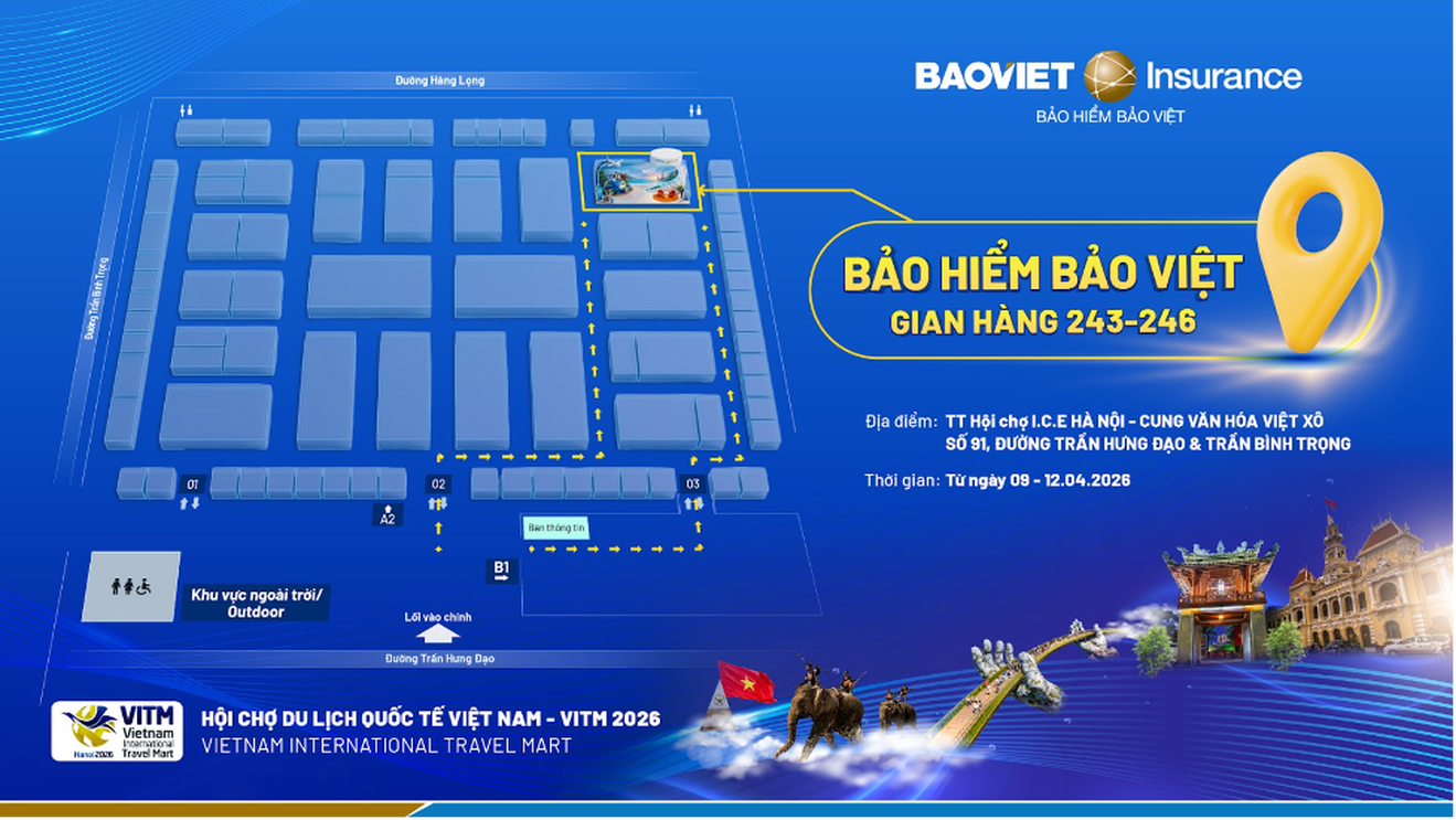 (Thanh tra) - Trong bối cảnh nhu cầu du lịch của người Việt đang tăng mạnh, TCT Bảo hiểm Bảo Việt chính thức tham gia Hội chợ Du lịch Quốc tế Việt Nam (VITM) với nhiều chương trình ưu đãi dành riêng cho khách tham quan cùng loạt hoạt động trải nghiệm, trò chơi tương tác hấp dẫn tại gian hàng từ ngày 9-12/4/2026.