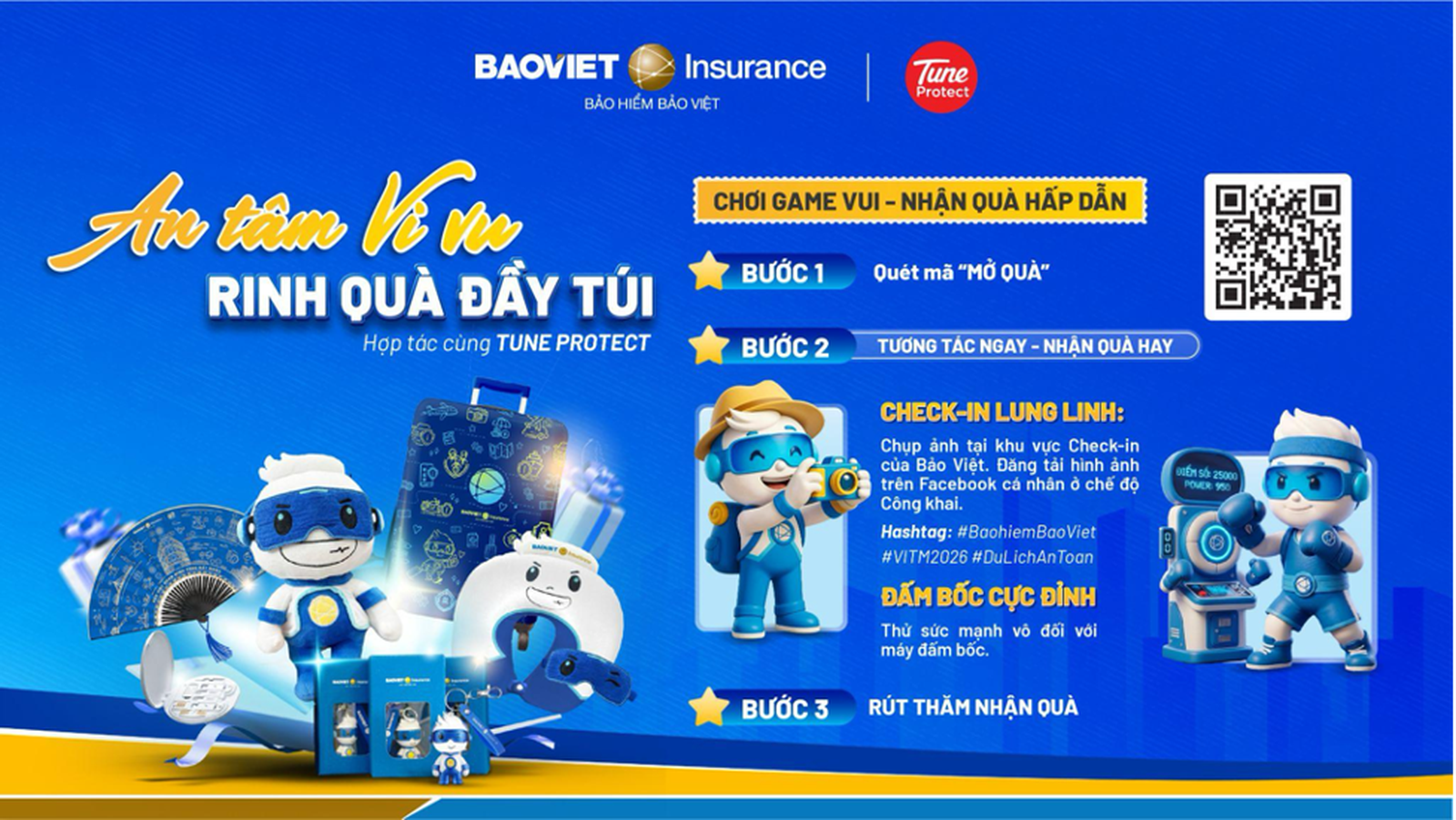 Bước 3: Rút thăm nhận quà: Sau khi hoàn thành các hoạt động, khách tham gia sẽ có cơ hội rút thăm may mắn để nhận các phần quà tặng du lịch đồng hành cùng các chuyến đi đến từ Bảo hiểm Bảo Việt.