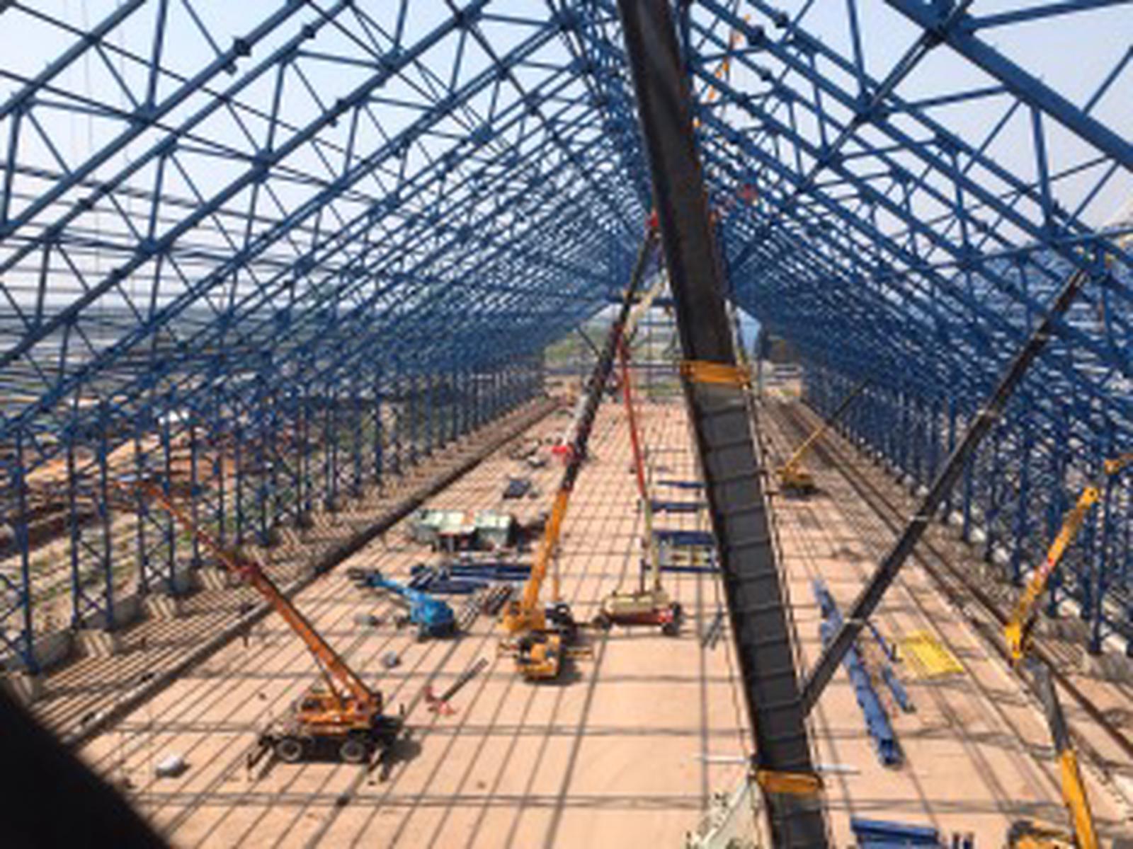 Hơn 20 chiếc cẩu tự hành các loại được tập kết triển khai lắp đặt Kho than của NMNĐ Thái Bình 2.