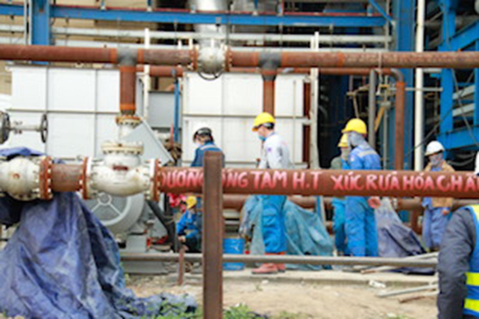 Các nhà thầu thực hiện công tác thông thổi, kiểm tra hệ thống đường ống của NMNĐ Thái Bình 2 trước khi thực hiện hòa lưới điện đồng bộ.
