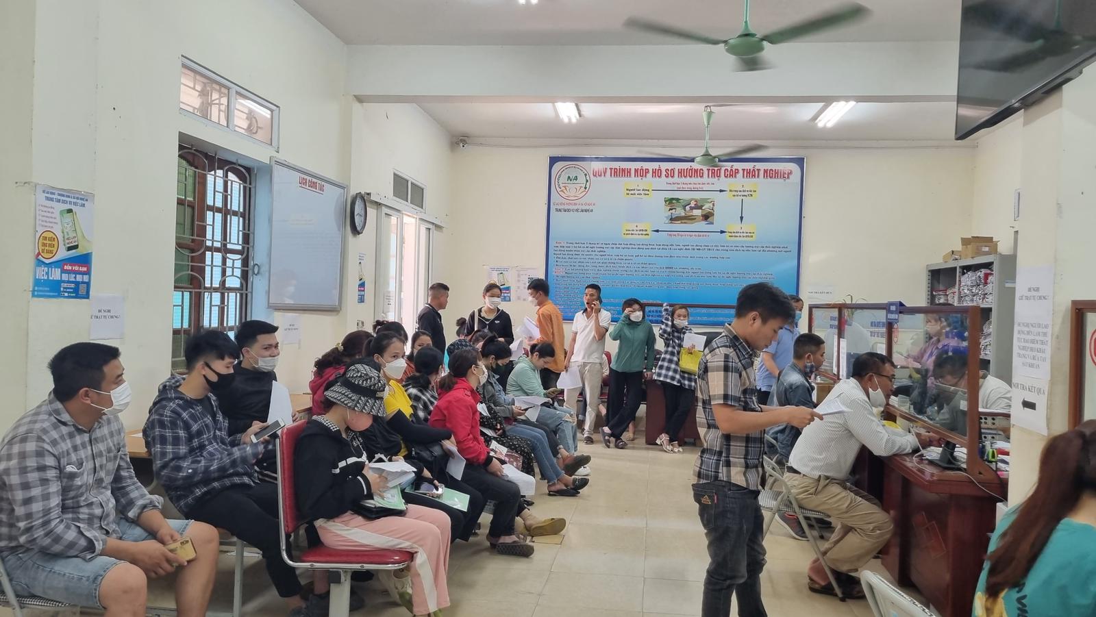 NLĐ mất việc đến đăng ký bảo hiểm thất nghiệp tại Trung tâm Dịch vụ việc làm tỉnh. Ảnh: TL