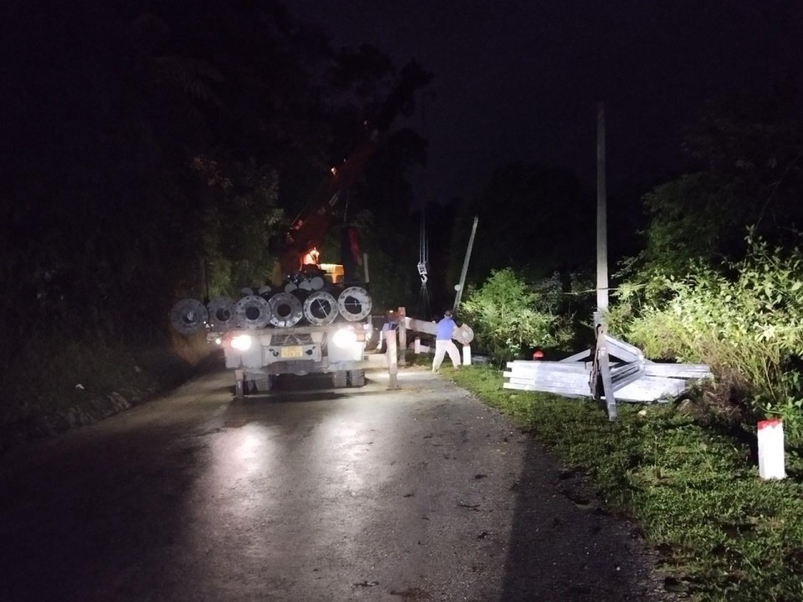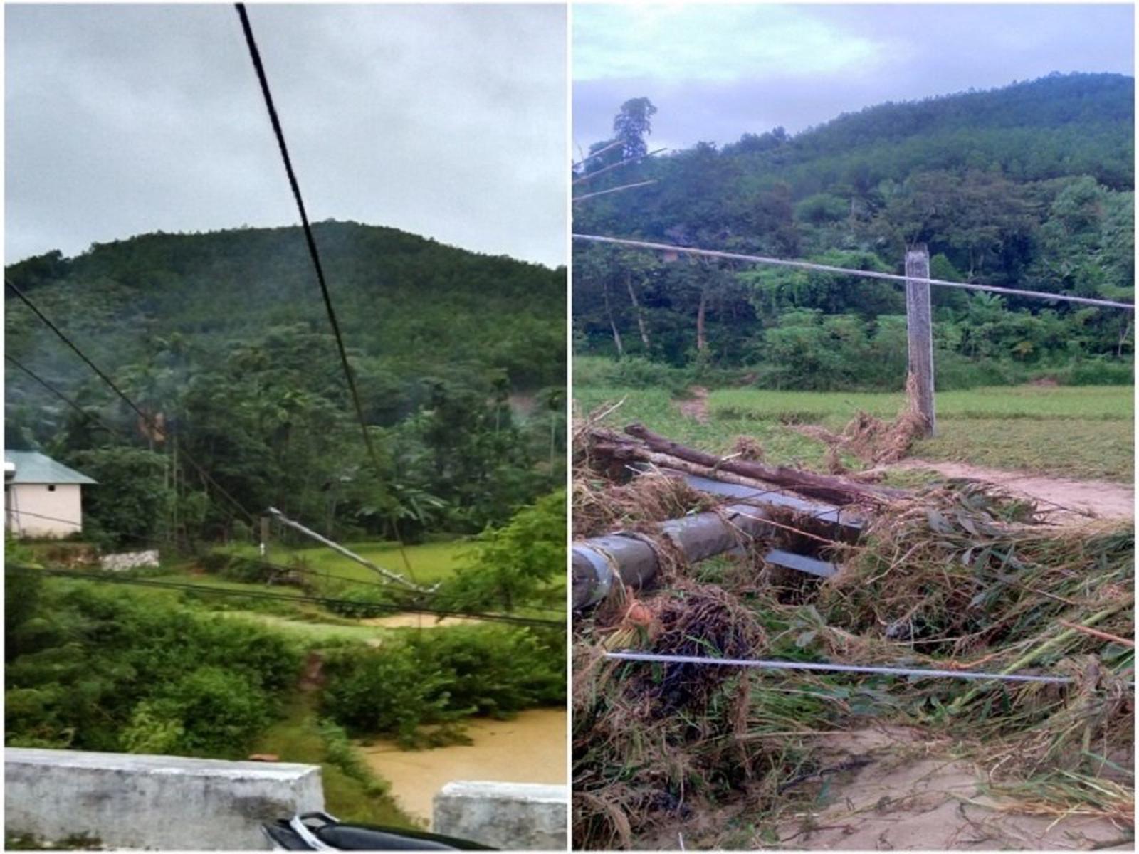 Cột điện gãy đỗ do ảnh hưởng của giông lốc xảy ra vào ngày 27/9/2023 trên địa bàn huyện Quỳ Châu, Quế Phong. Ảnh: NT