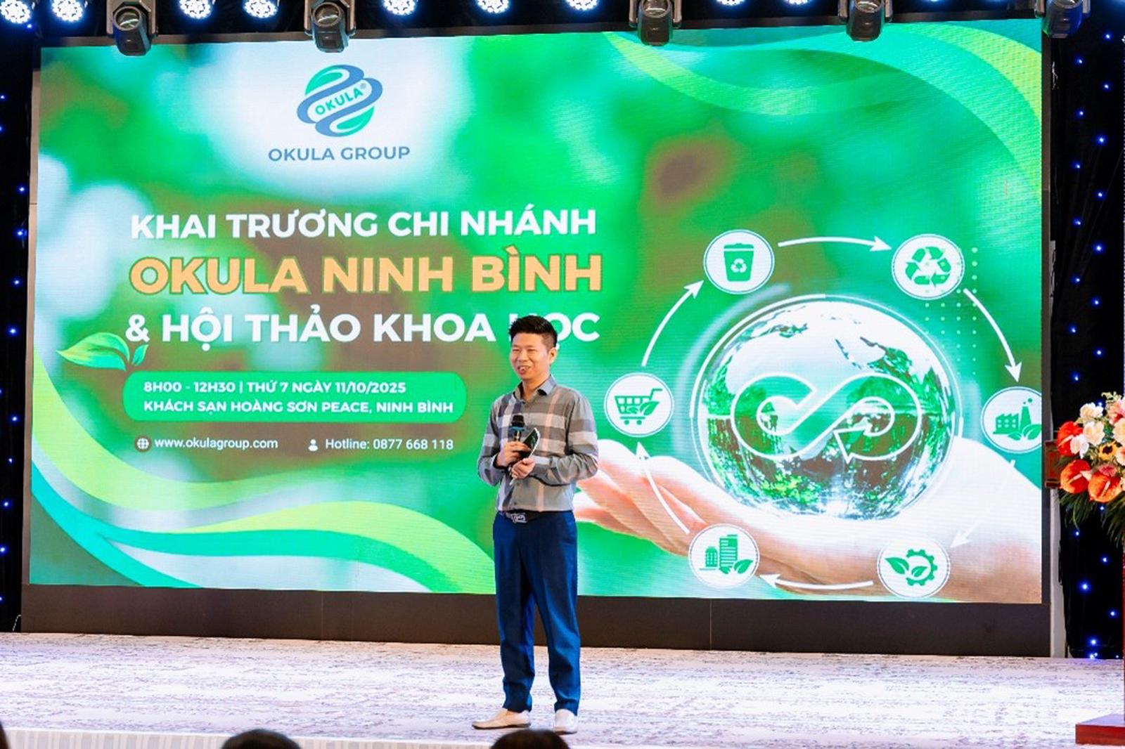 Nhân dịp này, Okula Group tự hào đánh dấu bước ngoặt mới với lễ khai trương cửa hàng Okula Group tại thành phố Ninh Bình. Sự kiện này đánh dấu bước phát triển quan trọng trong hành trình không ngừng đổi mới và khẳng định vị thế của một trong những doanh nghiệp tiên phong tại Việt Nam trong nghiên cứu và ứng dụng công nghệ enzym sinh học vào sản xuất các sản phẩm tẩy rửa gia dụng. Tại buổi khai trương đã diễn ra chương trình Hội thảo khoa học với chủ đề “Làm sạch Thông Minh - Bí Quyết Vàng cho tuổi thọ khỏe Mạnh” trực tiếp Tiến Sĩ Trịnh Xuân Đức - viện trưởng Viện kinh tế kỹ thuật và môi trường (SIEE) chia sẻ với sự tham gia của gần 200 đại biểu tham dự. Nhân dịp đặc biệt này, ông Cù Vĩnh Toàn - Tổng Giám đốc Okula Group đã gửi lời tri ân sâu sắc đến Quý đối tác, Quý khách hàng đã luôn tin tưởng và đồng hành: “Sự ủng hộ của Quý vị chính là nguồn động lực to lớn để chúng tôi tiếp tục nỗ lực, sáng tạo và cống hiến nhiều hơn nữa cho ngành hàng Việt”.