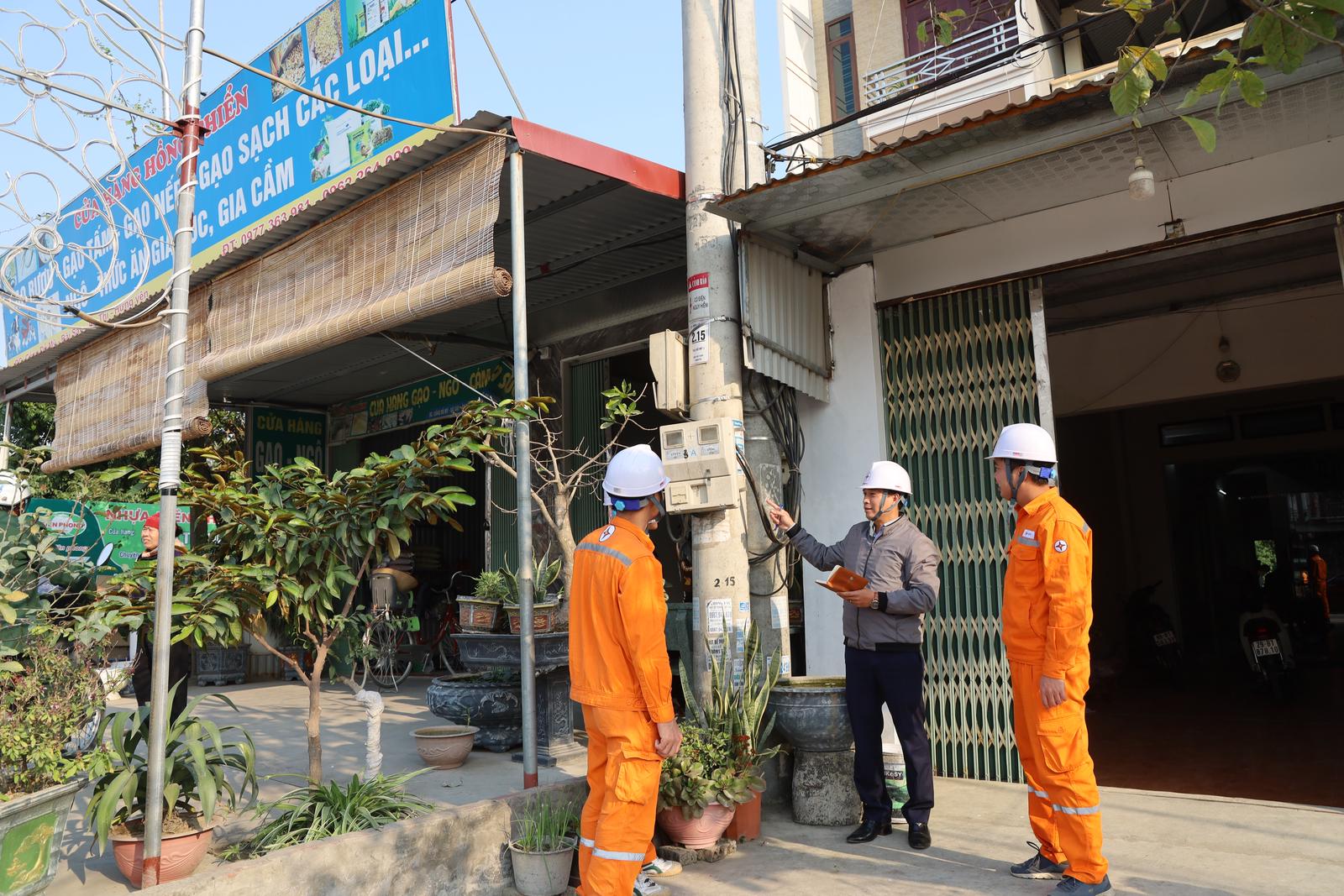 Điện lực Ân Thi kiểm tra đường dây điện vào nhà khách hàng