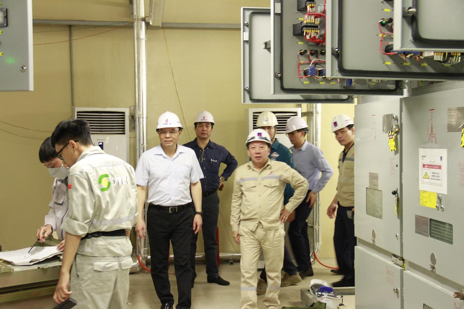 Tổng Giám đốc Lê Mạnh Hùng kiểm tra hệ thống điện dự phòng Tổ máy số 2 NMNĐ Thái Bình 2