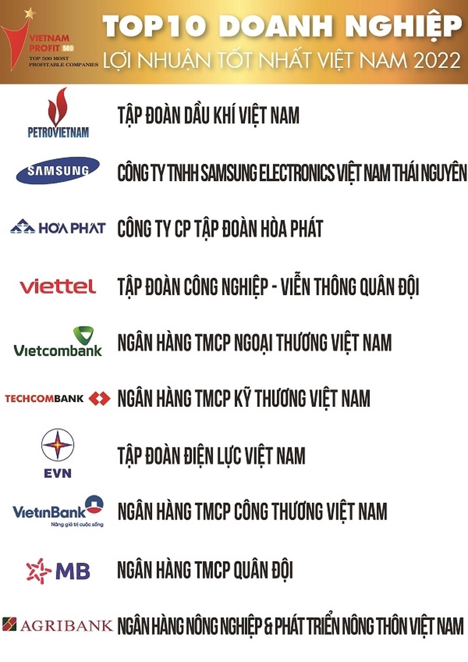 Top 10 Bảng xếp hạng Doanh nghiệp lợi nhuận tốt nhất Việt Nam năm 2022