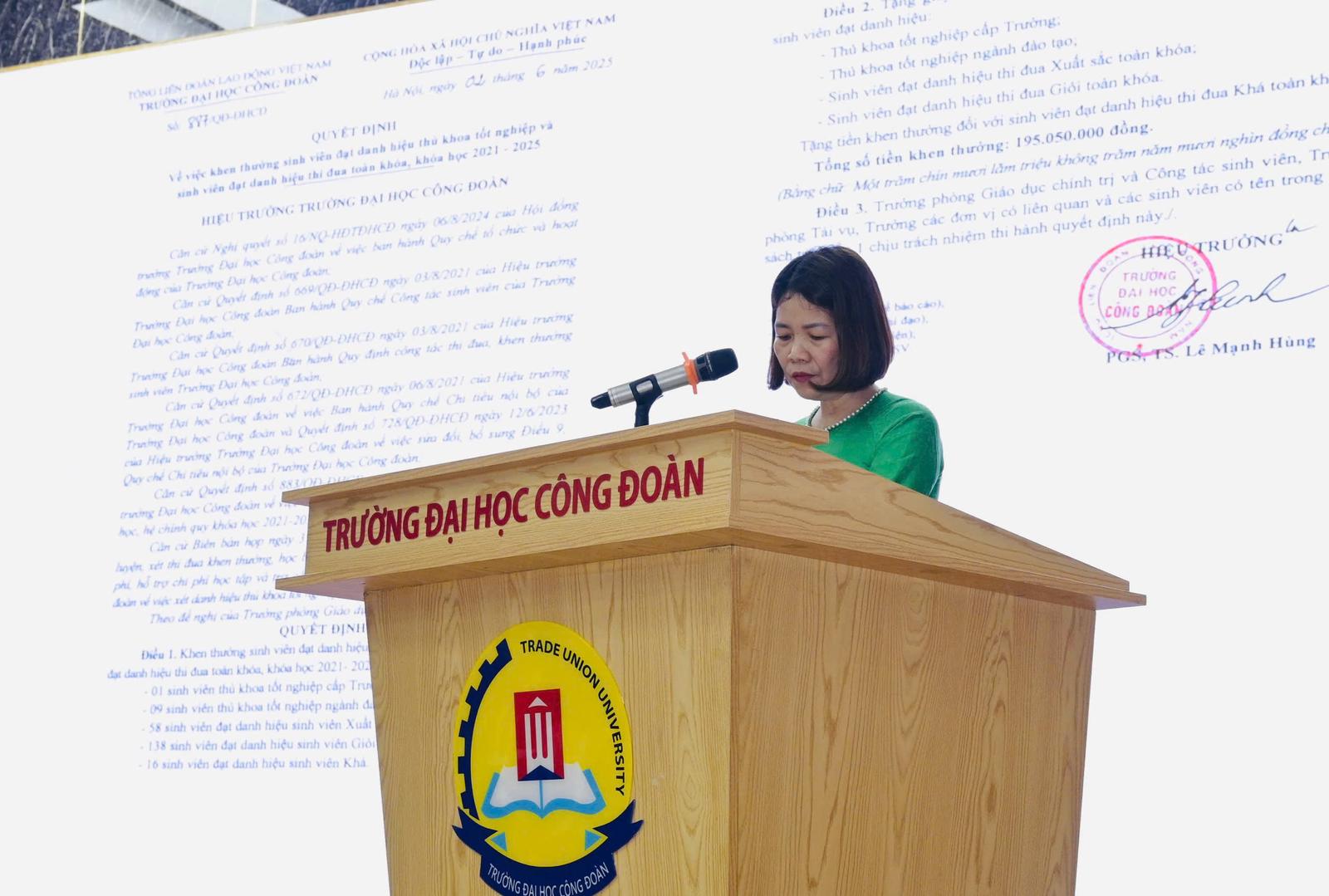 PGS.TS Lê Mạnh Hùng, Hiệu trưởng Trường Đại học Công đoàn phát biểu tại buổi lễ. Ảnh: T.N