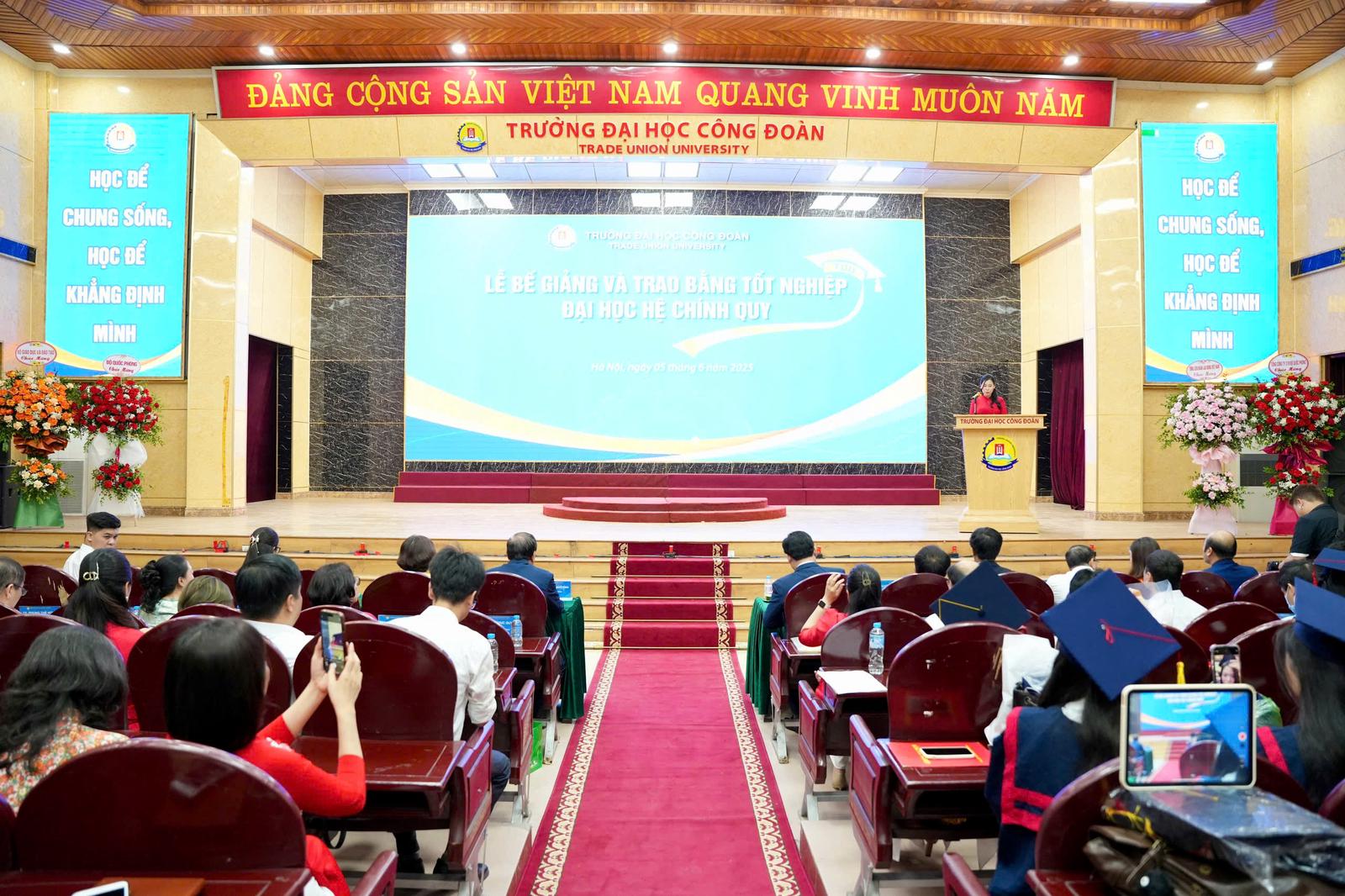 Lễ bế giảng và trao Bằng tốt nghiệp đại học hệ chính quy năm 2025 có sự tham dự của Ban Lãnh đạo Trường Đại học Công đoàn và hơn 1.600 các tân cử nhân. Ảnh: T.N