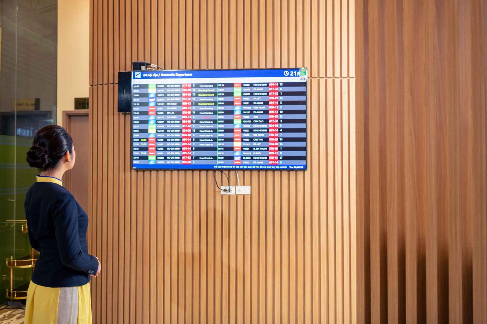 Song song đó, với màn hình giờ bay trực tuyến được kết nối với sân bay KH an tâm tận hưởng mà không lo bị lỡ chuyến bay.