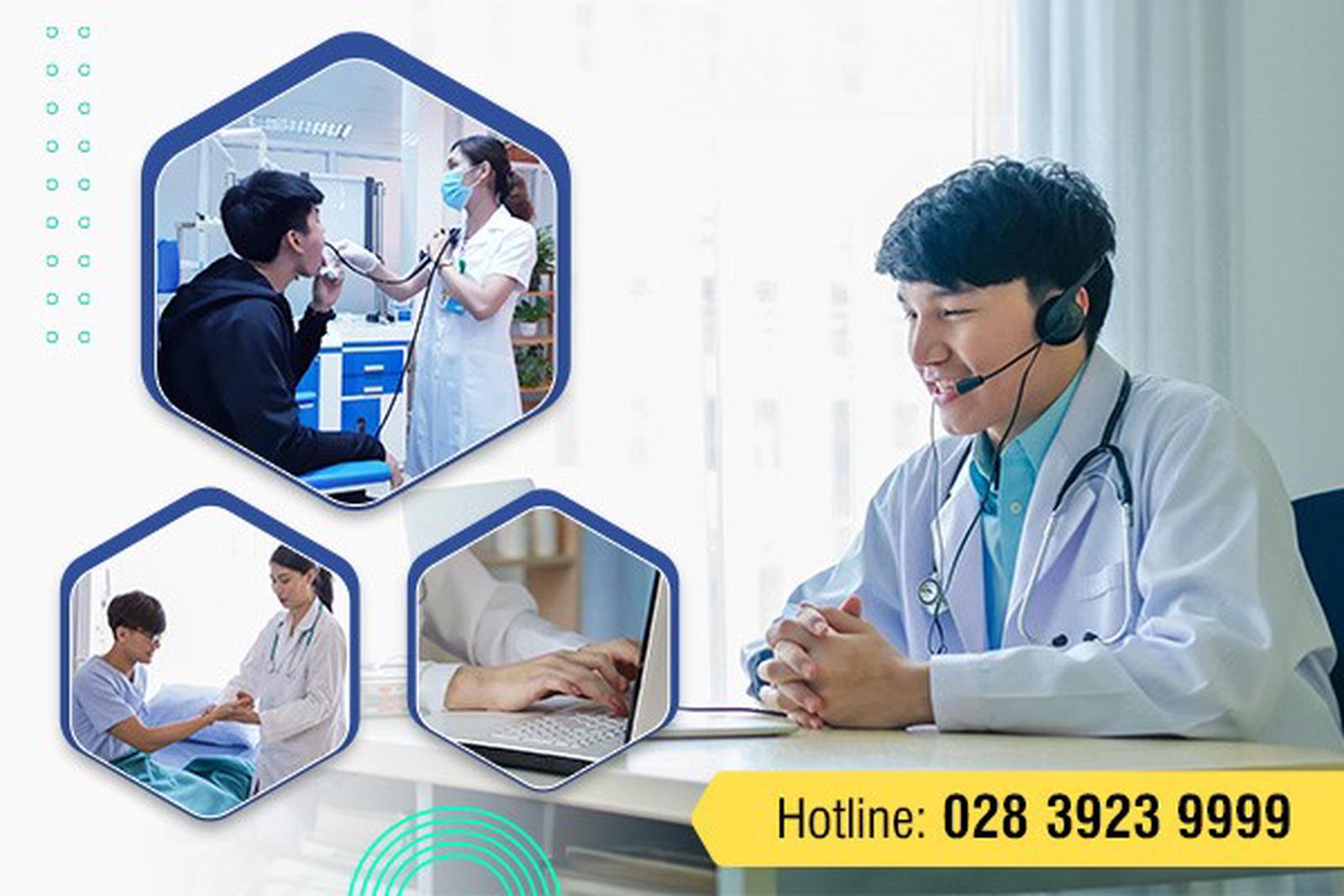 Dịch vụ tư vấn trực tuyến hỗ trợ bệnh nhân đăng ký khám trước qua hotline: 028 3923 9999. Với việc đặt hẹn này, quý bệnh nhân có thể dễ dàng trao đổi mọi vấn đề trước khi tiến hành đến khám chữa, đồng thời nếu đồng ý khám chuyên viên sẽ cấp mã số khám nhanh theo thời gian cá nhân phù hợp của mỗi bệnh nhân…
