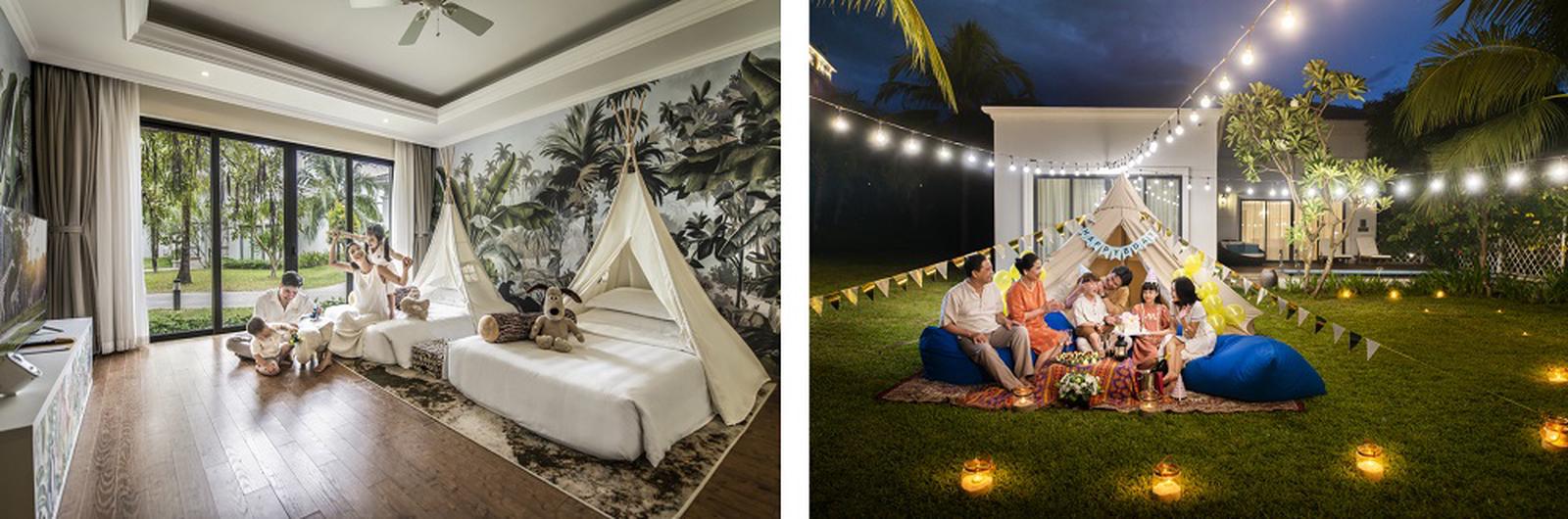 Cả gia đình sẽ được tận hưởng chuyến đi với những dịch vụ đẳng cấp tại Vinpearl từ nghỉ dưỡng biển tại những villa thiết kế mới, đầy sáng tạo theo chủ đề đại dương hay rừng nhiệt đới, trải nghiệm Glamping dưới bầu trời biển đầy sao và thưởng thức BBQ ngay trong sân vườn villa với những món hải sản tươi ngon thượng hạng như chuyến chu du sống động và lý thú qua các miền vị giác. Kỳ nghỉ sẽ thêm phần thú vị khi con trẻ được trải nghiệm văn hóa truyền thống trong không gian “xuyên không” của Tinh Hoa Việt Nam, thăm thú thiên nhiên hoang dã tại Vinpearl Safari, ngắm đại dương bao la với hàng vạn loài sinh vật tại Cung điện Hải Vương.