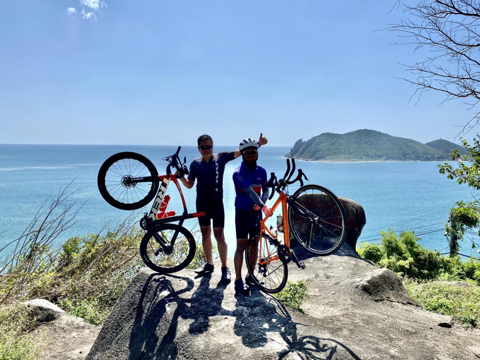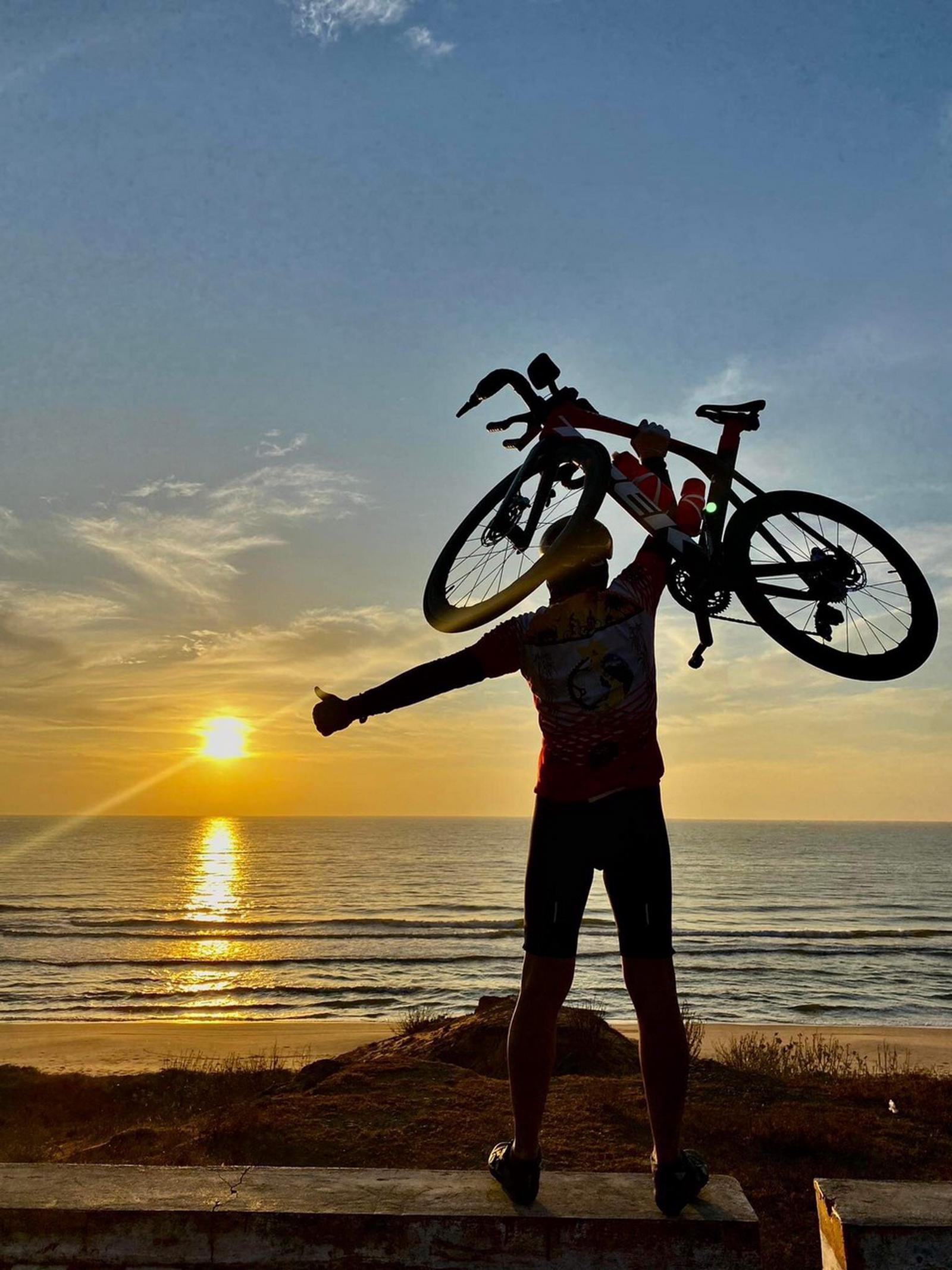 Anh Cường tâm sự: qua mùa dịch Covid-19, nhìn nhiều người đứng giữa lằn ranh sinh tử, anh và nhóm bạn đam mê thể thao quyết định thích gì thì nên làm đó. Với nền tảng sức khỏe sẵn có do chơi 3 môn thể thao bơi, đạp xe, chạy bộ thường xuyên, mọi người không mất quá nhiều thời gian để quyết định lên đường. Hành trình bắt đầu từ mũi Cà Mau. “Trong một ngày, chúng tôi đạp từ 3 giờ sáng đến khoảng 12 - 13 giờ trưa là nghỉ. Thời gian còn lại, chúng tôi giải quyết công việc hoặc gặp gỡ những anh em cùng chung sở thích ở địa phương. Những ngày sau đó, vì ngược gió, chúng tôi đạp chừng 160 - 180 km rồi nghỉ ngơi. Ở Quy Nhơn hai anh em ở lại 3 ngày để bơi, đạp, chạy cùng các bạn ở địa phương”, anh Sơn kể.