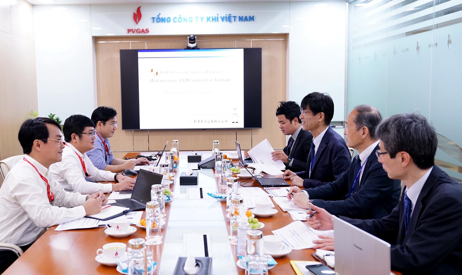 Chặng tiếp theo của chương trình tại Việt Nam, Đoàn công tác Nhật Bản đã làm việc với PV GAS LPG tại trụ sở Công ty ở Hà Nội và đi thăm các cơ sở hạ tầng liên quan đến lĩnh vực phân phối LPG khu vực Miền Bắc. Hai bên đã trao đổi thông tin về thị trường LPG mỗi bên, các thuận lợi/khó khăn trong lĩnh vực phân phối LPG, sự khác biệt về hành lang pháp lý/hạ tầng kỹ thuật tại mỗi quốc gia, thói quen tiêu dùng của khách hàng…cũng như các giải pháp khả thi, phù hợp điều kiện mỗi nước. PV GAS/PV GAS LPG và Đoàn công tác Nhật Bản đã thống nhất khởi động đề án nghiên cứu xây dựng Nhà máy sản xuất vỏ bình LPG để đáp ứng nhu cầu ngày càng tăng của thị trường.