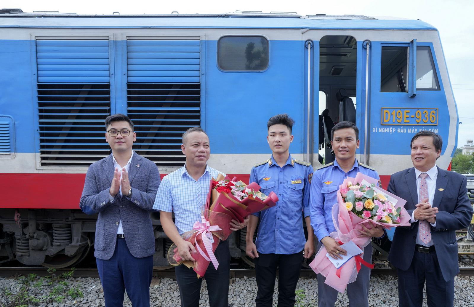 Lãnh đạo PV GAS và VNR tặng hoa cho tổ điều khiển đoàn tàu LNG