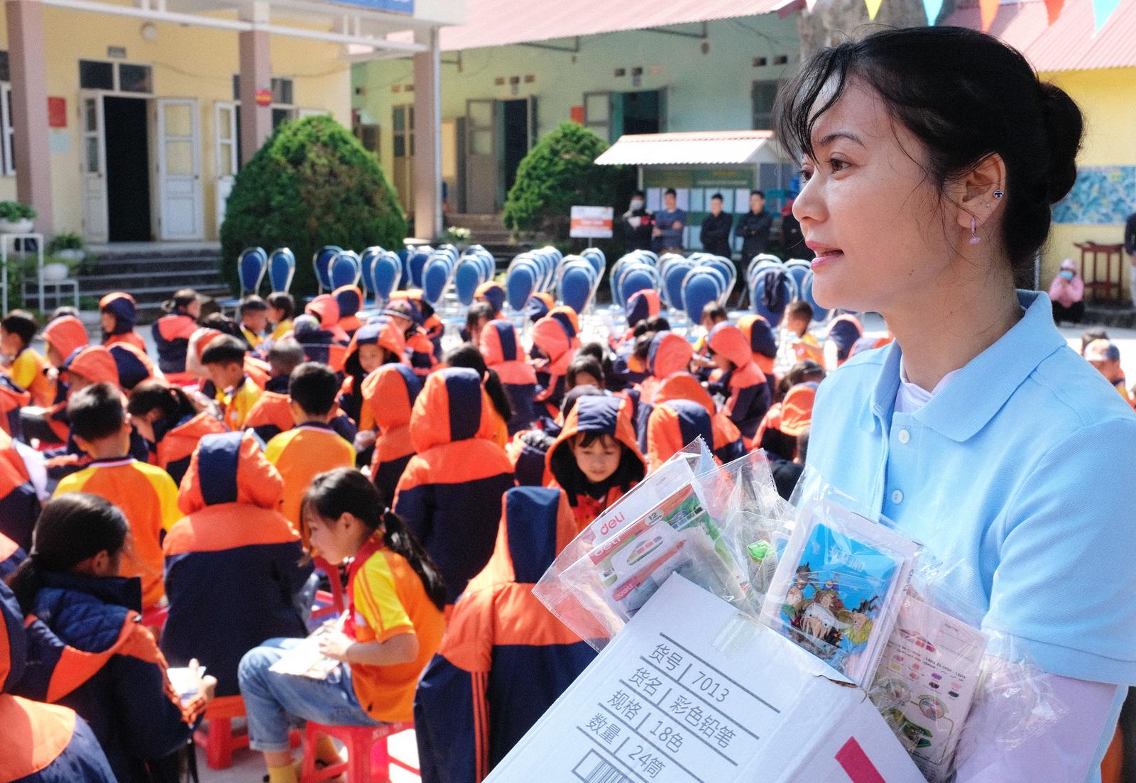 Các đại biểu đại diện PV GAS trao quà đồ dùng học tập đến tận tay học trò Lạng Sơn