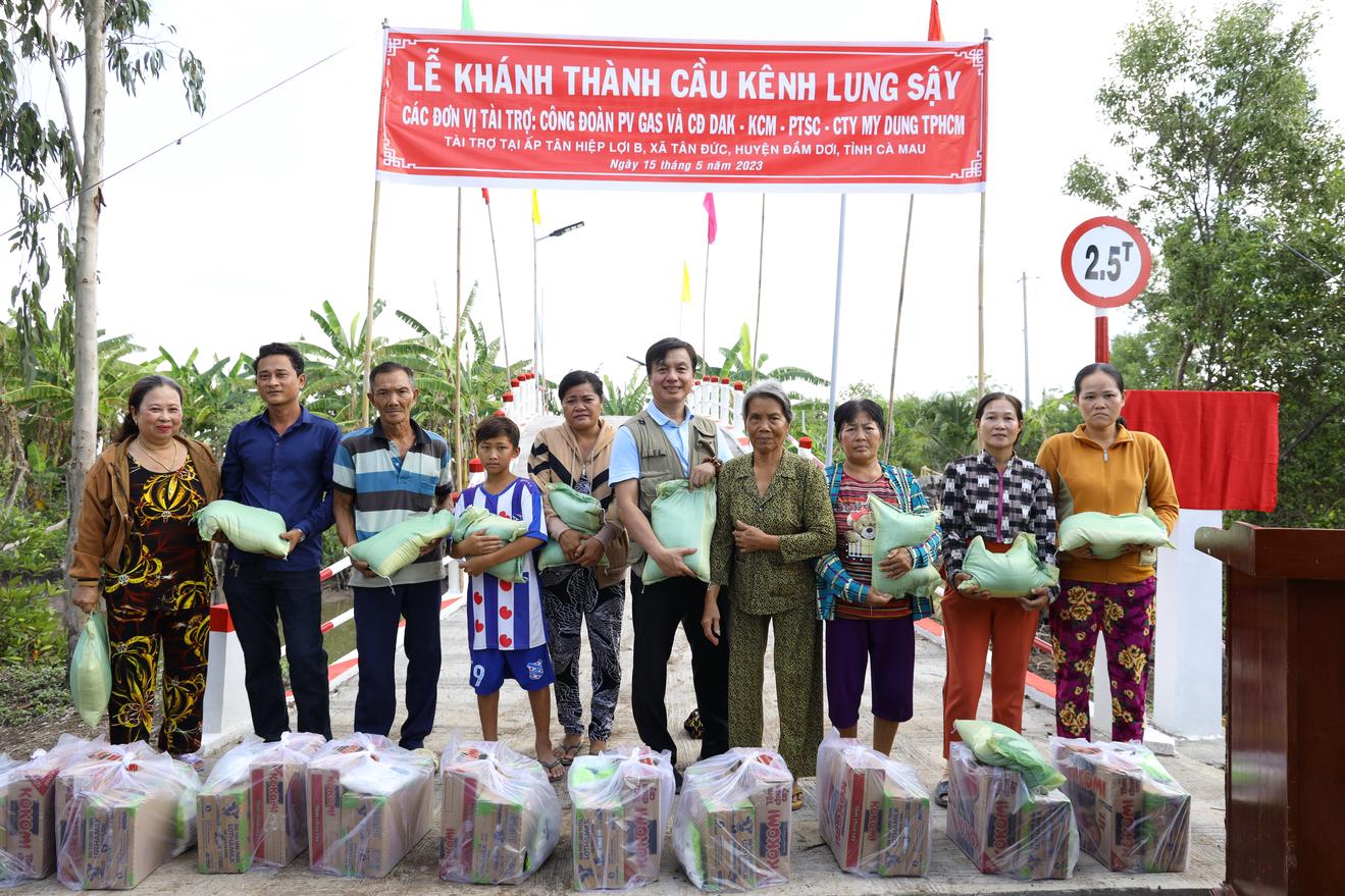 Bên cạnh đó, PV GAS PMC cũng chung tay cùng Công đoàn Tổng Công ty Khí Việt Nam và Công ty Khí Cà Mau xây dựng Cầu Lung Sậy trên địa bàn Ấp Tân Hiệp Lợi B, xã Tân Đức, Huyện Đầm Dơi, Tỉnh Cà Mau. Chiếc cầu được khánh thành vào ngày 15/05, nối liền 2 bờ giúp bà con nơi đây sinh hoạt thuận tiện, an toàn, học sinh đi học được dễ dàng hơn.