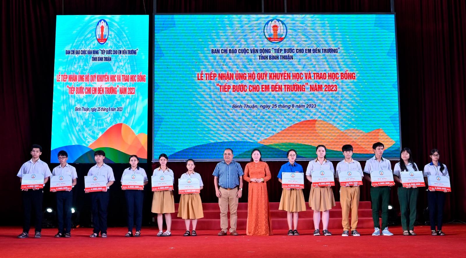 Tại Trung tâm hội nghị tỉnh Bình Thuận, Ban chỉ đạo cuộc vận động “Tiếp bước cho em đến trường” đã tổ chức Lễ tiếp nhận ủng hộ Quỹ Khuyến học và trao học bổng “Tiếp bước cho em đến trường” năm 2023. Buổi lễ được truyền hình trực tiếp trên Đài Phát thanh - Truyền hình Bình Thuận.