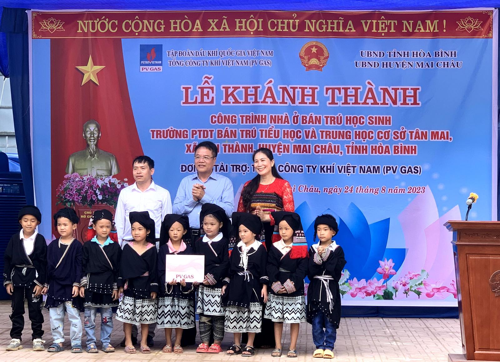 Ngay trước thềm Năm học mới, PV GAS cùng UBND huyện Mai Châu - tỉnh Hòa Bình tổ chức Lễ khánh thành công trình Nhà ở bán trú học sinh Trường Phổ thông dân tộc bán trú - Tiểu học và Trung học cơ sở Tân Mai, xã Tân Thành (huyện Mai Châu, tỉnh Hòa Bình). Đại diện Đoàn đại biểu Quốc hội tỉnh Hòa Bình cũng đã tham dự và chứng kiến Lễ khánh thành.