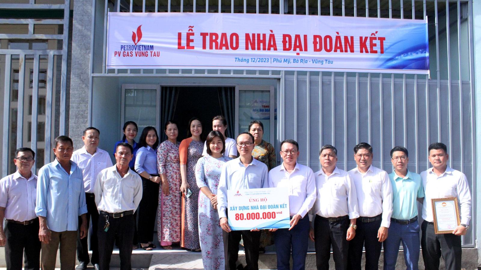 Chào năm mới 2024, đại diện KVT đã đến thăm và trao tặng 02 căn nhà tình nghĩa tại xã Long Sơn, 02 căn nhà đại đoàn kết tại thị xã Phú Mỹ, tỉnh Bà Rịa – Vũng Tàu. Trong năm 2023, PV GAS/KVT đã xây tặng 07 căn nhà tình nghĩa, nhà đại đoàn kết dành tặng bà con tỉnh Bà Rịa – Vũng Tàu với tổng trị giá 720 triệu đồng. Đây là một hoạt động vô cùng ý nghĩa trong chương trình ASXH mà PV GAS đã giao cho KVT triển khai thực hiện, nhằm giúp đỡ các hộ gia đình khó khăn ổn định cuộc sống, yên tâm làm việc.