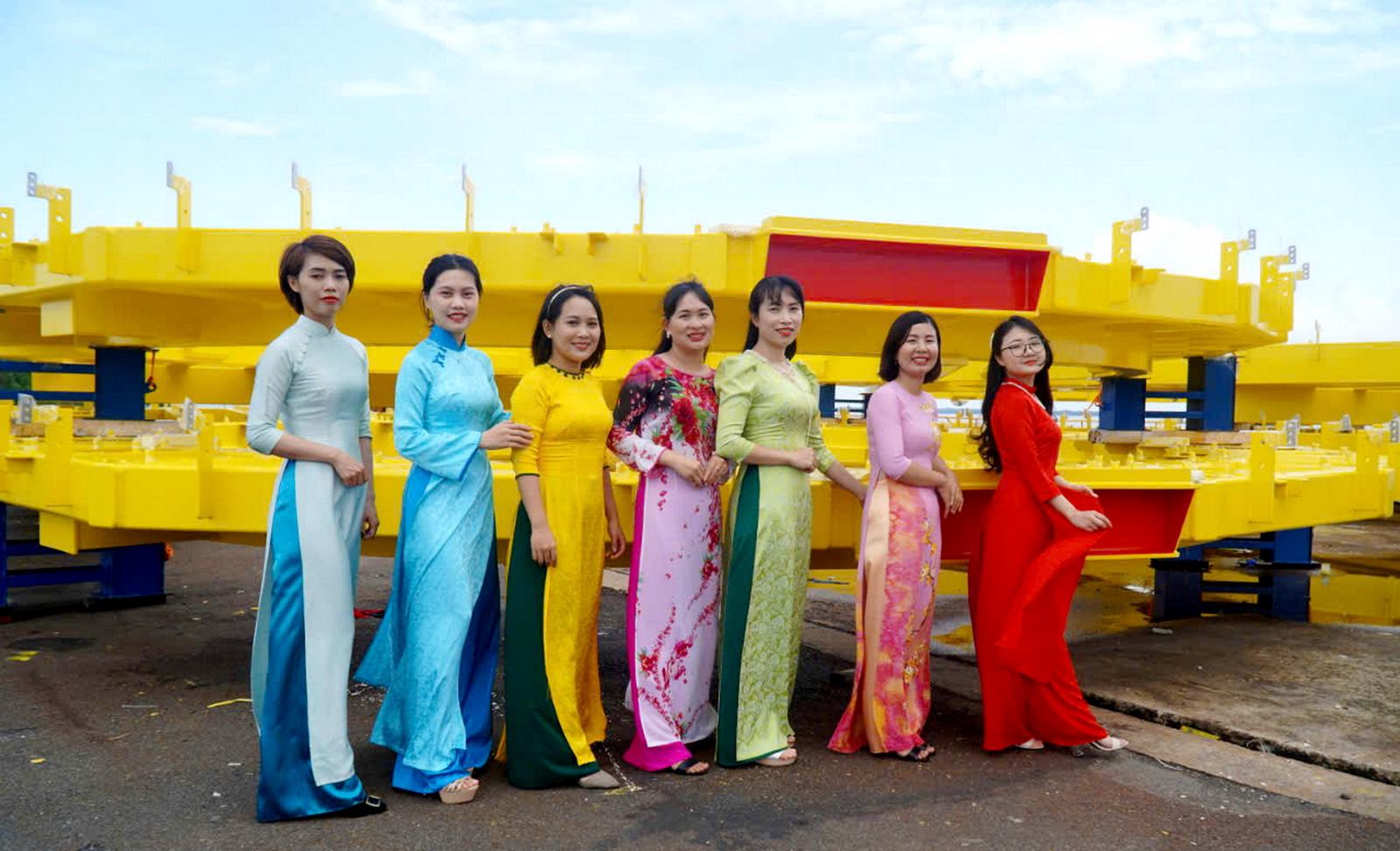 Tại nhà máy sản xuất ống thép, đúng ngày 20/10, chị em nhân viên còn đồng phục áo dài đi làm, hưởng ứng phong trào quảng bá áo dài công sở trong toàn quốc.