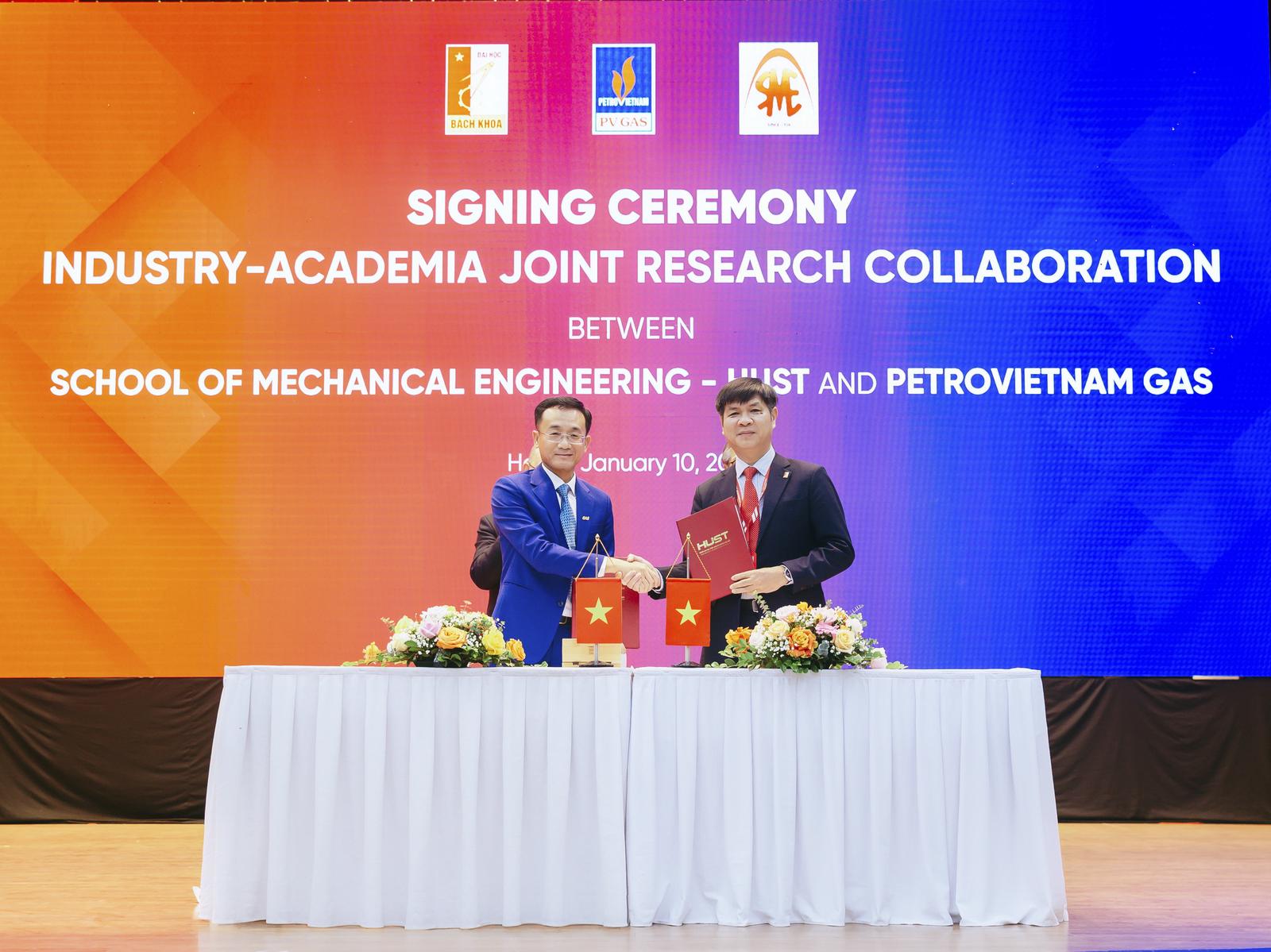 Thực hiện nghi thức ký kết, về phía PV GAS có ông Trần Nhật Huy - Phó Tổng giám đốc; về phía SME có PGS. TS. Trương Hoành Sơn - Hiệu trưởng.