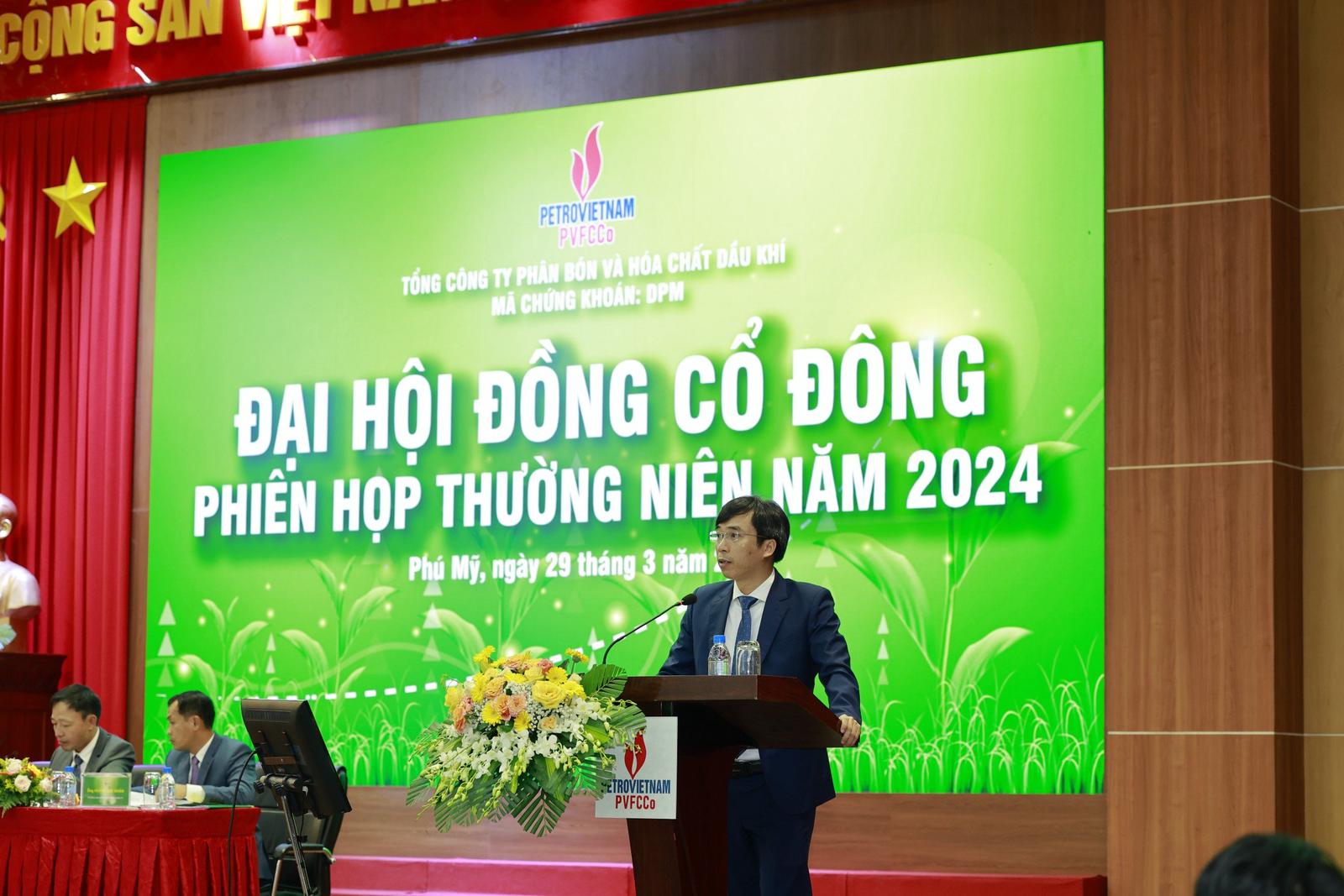 Phát biểu tại phiên họp, thay mặt Petrovietnam – Công ty mẹ, Cổ đông lớn, ông Bùi Minh Tiến khẳng định năm 2023 là một năm rất khó khăn với ngành phân bón nói chung và PVFCCo nói riêng. Ông ghi nhận, biểu dương những nỗ lực của tập thể người lao động PVFCCo để hoàn thành cơ bản các chỉ tiêu kế hoạch đề ra. Ông gửi lời chúc mừng các nhân sự mới được ĐHĐCĐ tin tưởng bầu vào HĐQT và tin tưởng HĐQT sẽ lãnh đạo PVFCCo bước sang trang mới thành công, vượt qua các thách thức mà TCT đang đối diện: Nguồn nguyên liệu khí tự nhiên đang ngày càng suy giảm; Cạnh tranh trong thị trường ngày càng khốc liệt và các yêu cầu mới về môi trường hướng tới mục tiêu net-zero mà chính phủ đã cam kết. Ông đề nghị Ban lãnh đạo PVFCCo tiếp thu đầy đủ các ý kiến của các cổ đông tại phiên họp, biến điều đó thành động lực, nâng cao công tác quản trị để điều hành tốt TCT. Ông Bùi Minh Tiến lưu ý PVFCCo cần phối hợp với PVGas để có nguồn và giá khí tối ưu; SX an toàn ổn định; Củng cố, tăng cường phát triển hệ thống phân phối bền vững; Triển khai duy trì giữ vững được thương hiệu tốt; Đẩy mạnh công tác đầu tư; chuyển dịch sang xu hướng mới như giảm phát thải; đột phá hơn về công tác nghiên cứu phát triển; Thực hiện đề án tái cấu trúc kết hợp đổi mới mô hình kinh doanh.